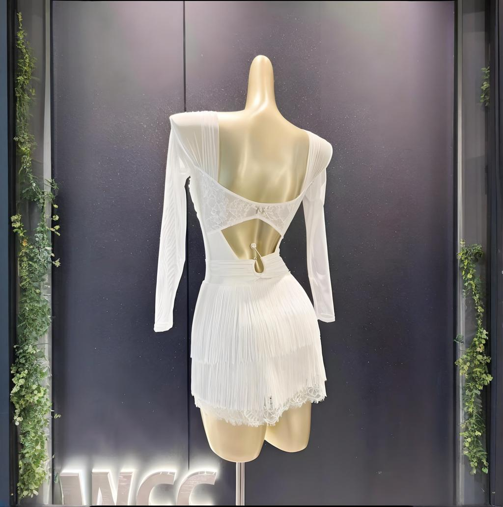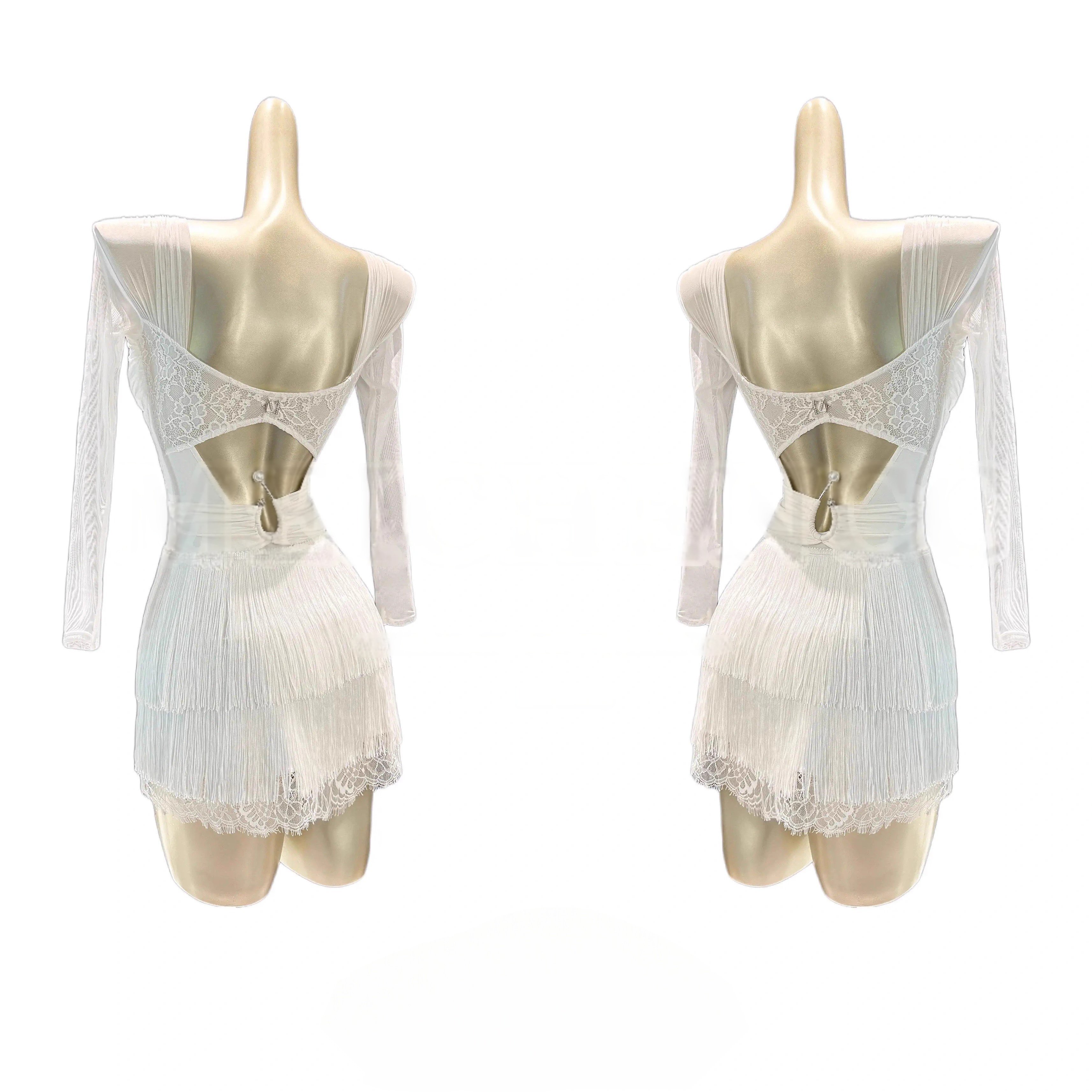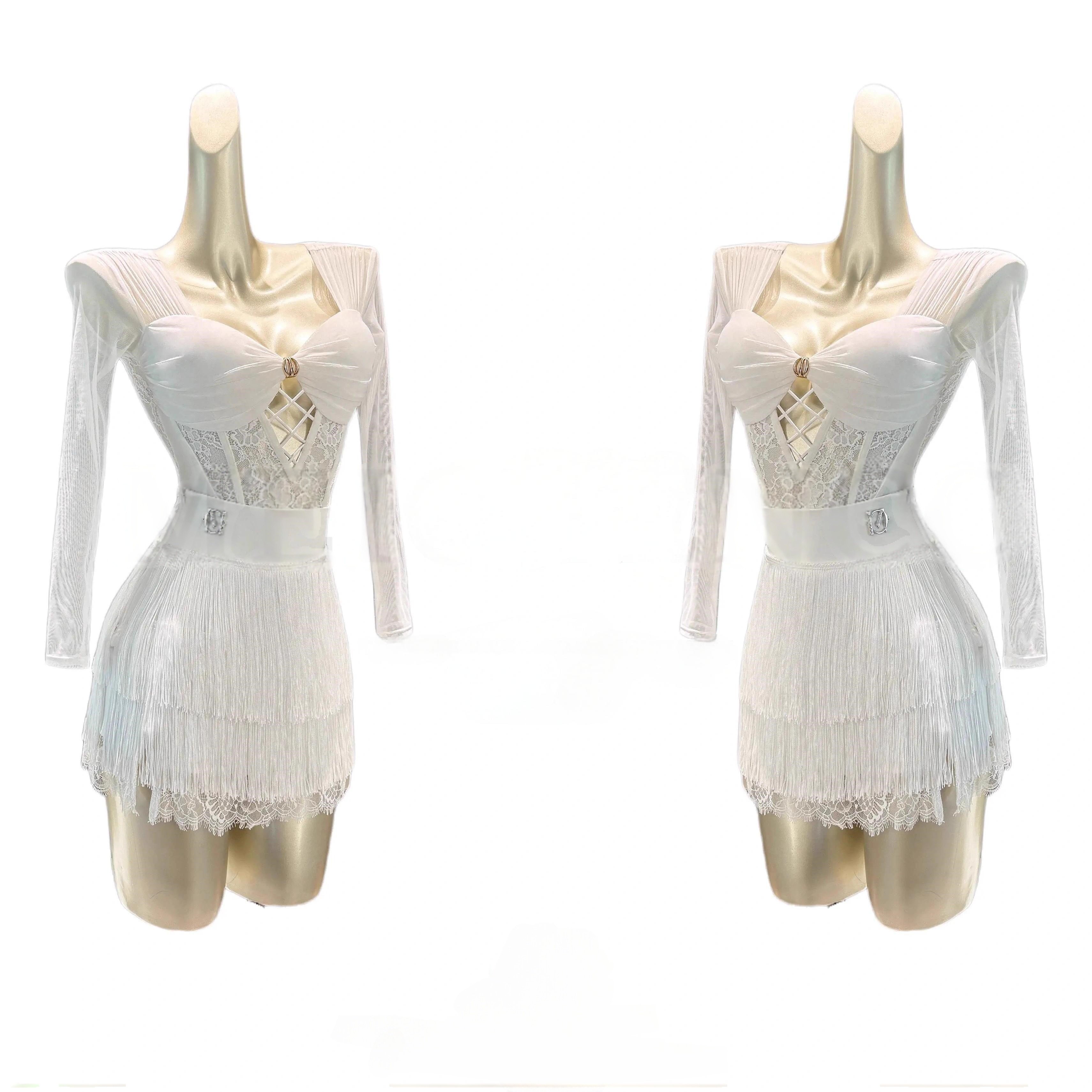 冬川子同款成人拉丁舞服高级感白色蕾丝上衣流苏半裙舞蹈练功服