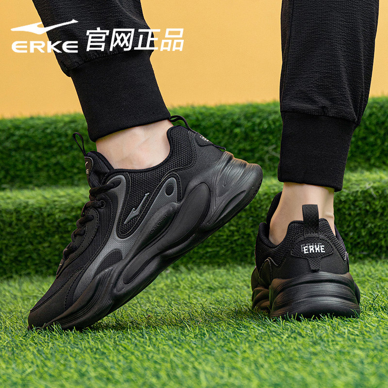 鸿星尔克男鞋老爹鞋黑色透气鞋子