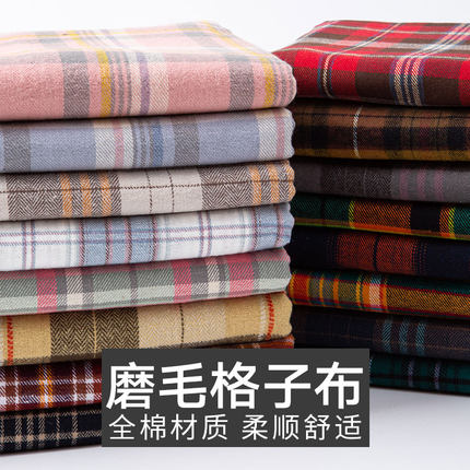 纯棉格子布料全棉磨毛衬衫布头服装清仓处理diy手工衣服棉布面料
