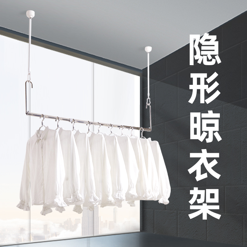 华峰单双杆顶装隐形晾衣架升降伸缩不锈钢白色小户型阳台晒被杆子