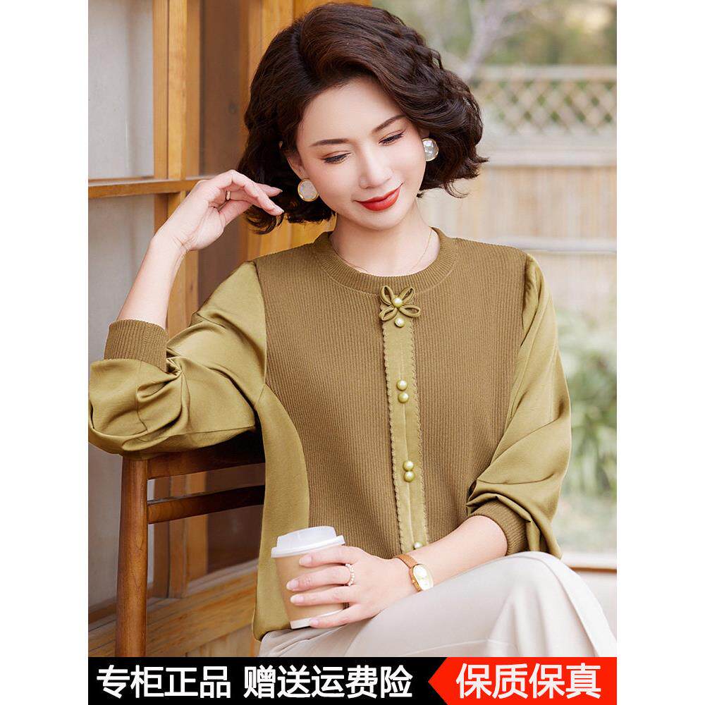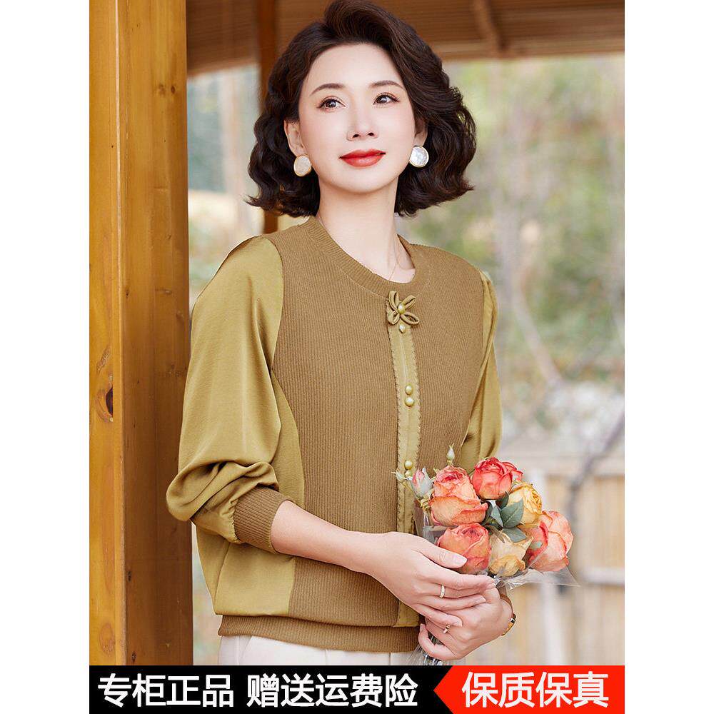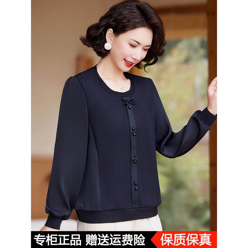 妈妈春装小衫时尚洋气高贵2025新款打底衫中老年女长袖桑蚕丝上衣