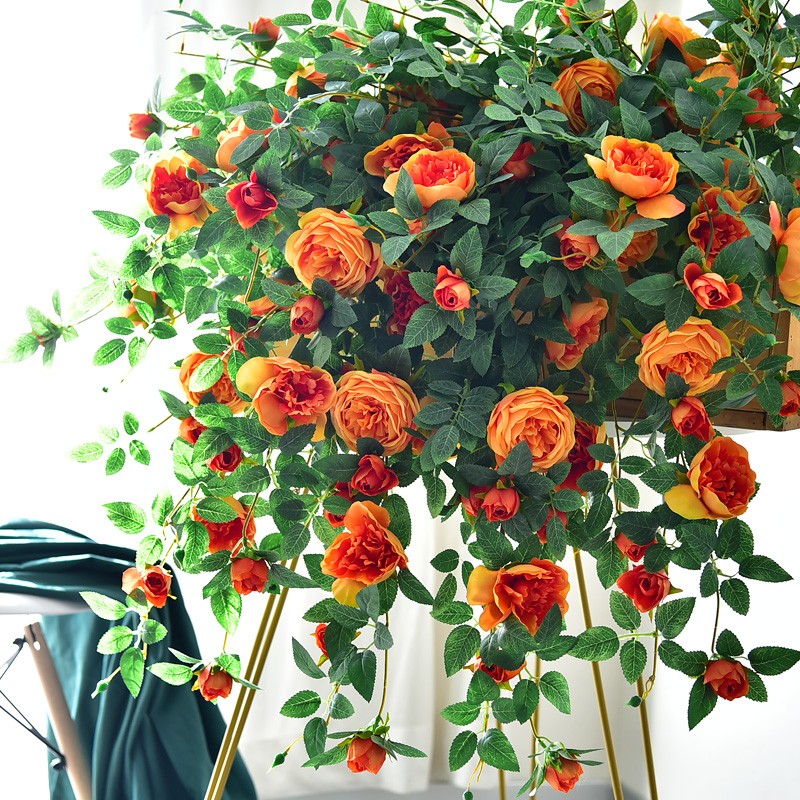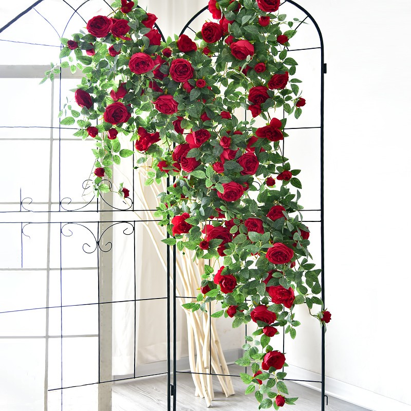 仿真玫瑰花藤蔓装饰花假花藤条植物塑料吊兰摆设墙面遮丑壁挂吊花