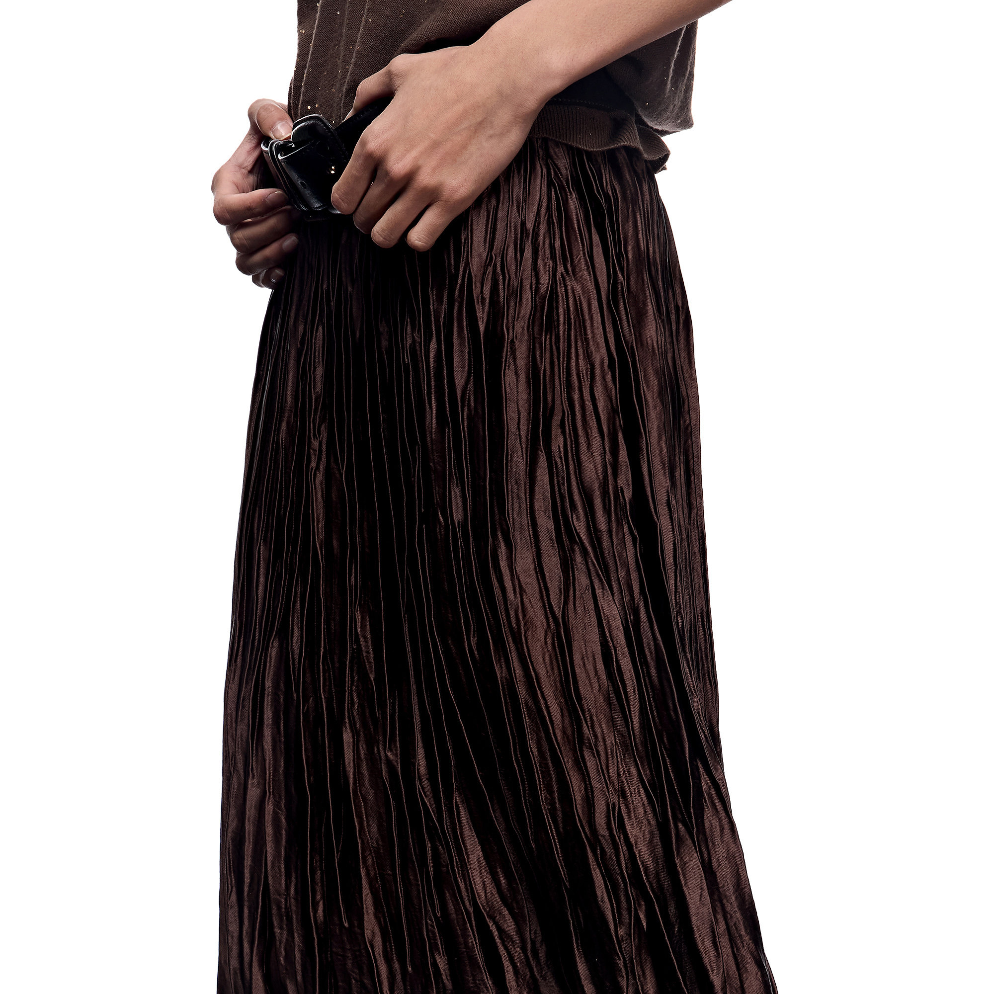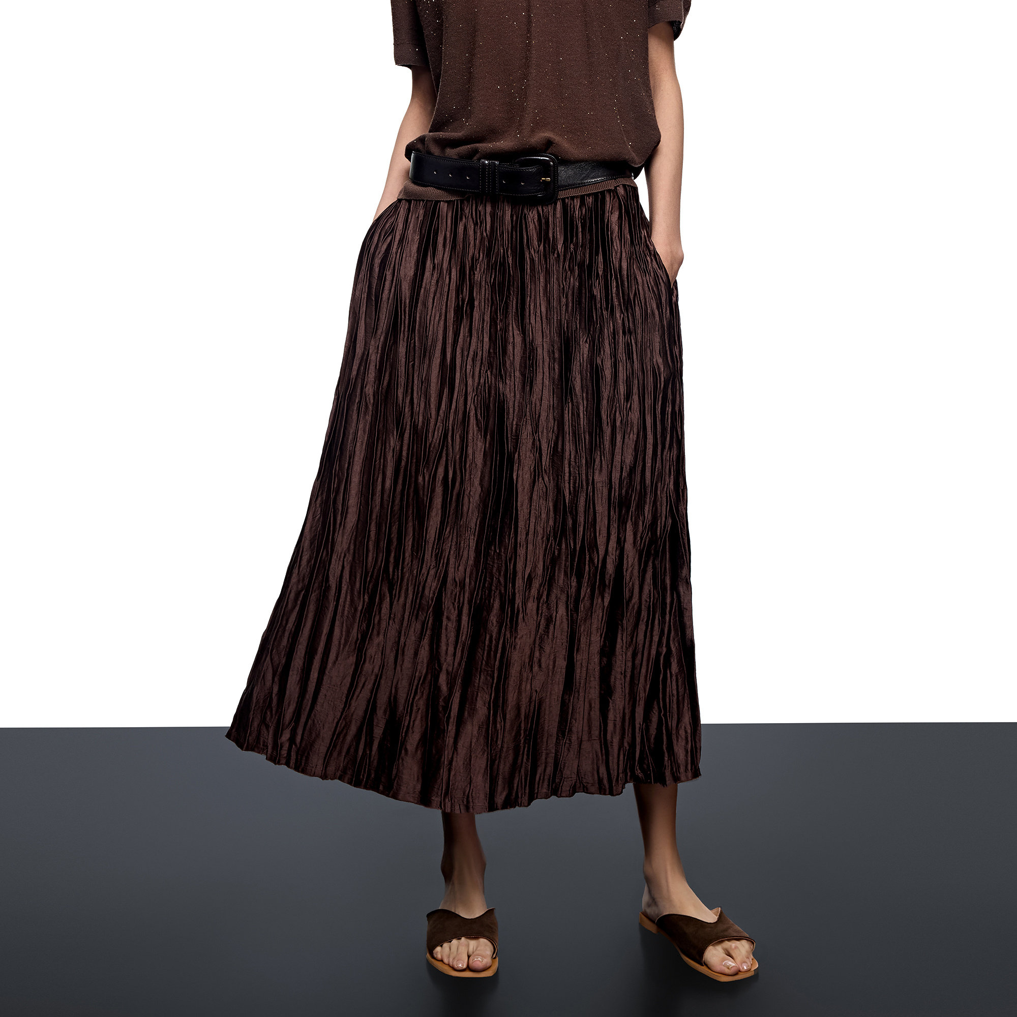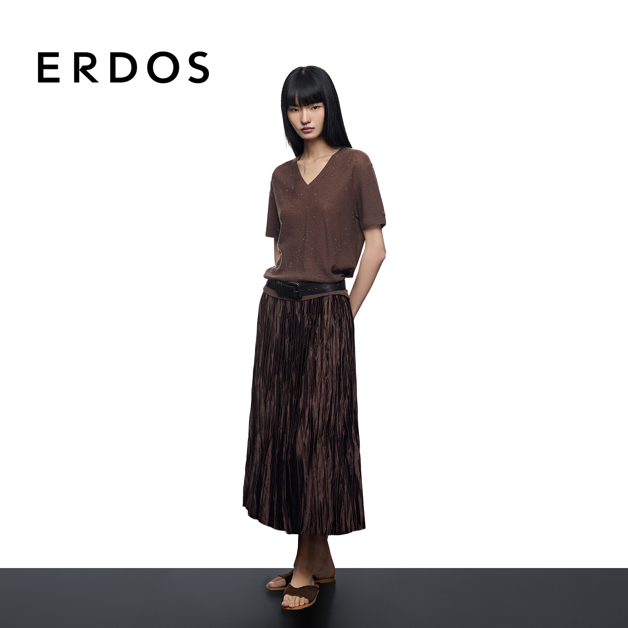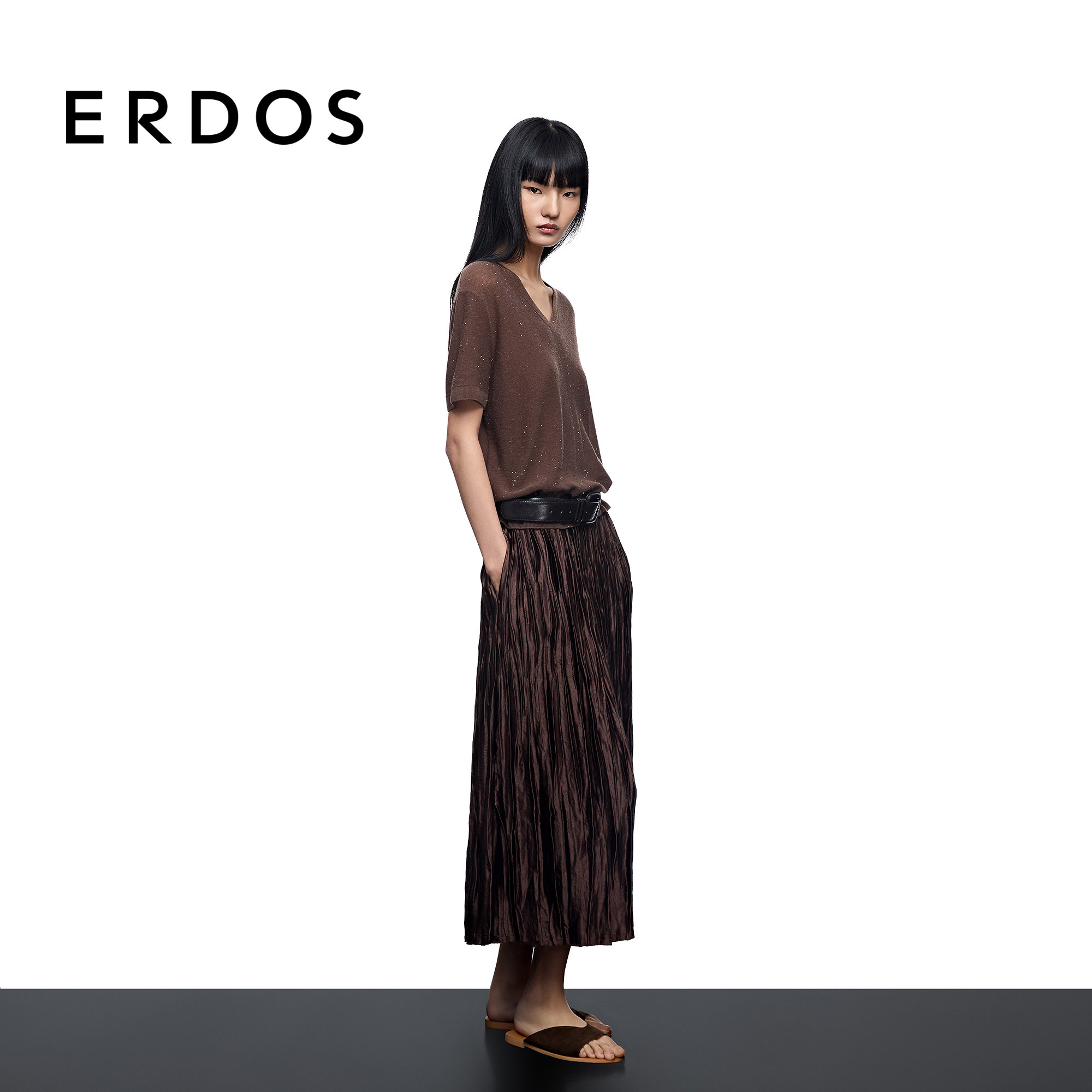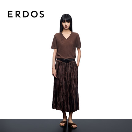 【醋酸褶皱半身裙】ERDOS 可可色垂感易打理A字伞裙女25年秋新品