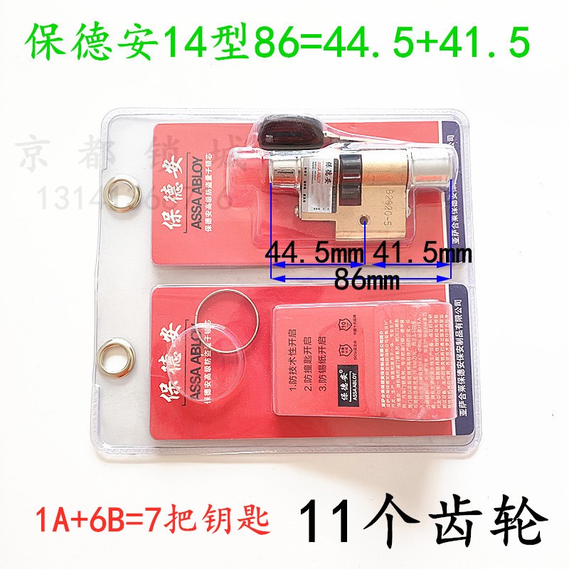 保德安A型带齿轮锁芯 春天盗门 型齿轮月牙钥匙8mm圆头