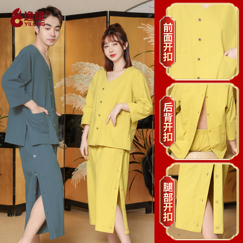 艾灸服纯棉前后开扣理疗服艾灸腿侧开长袖按摩专用衣针灸拔罐服