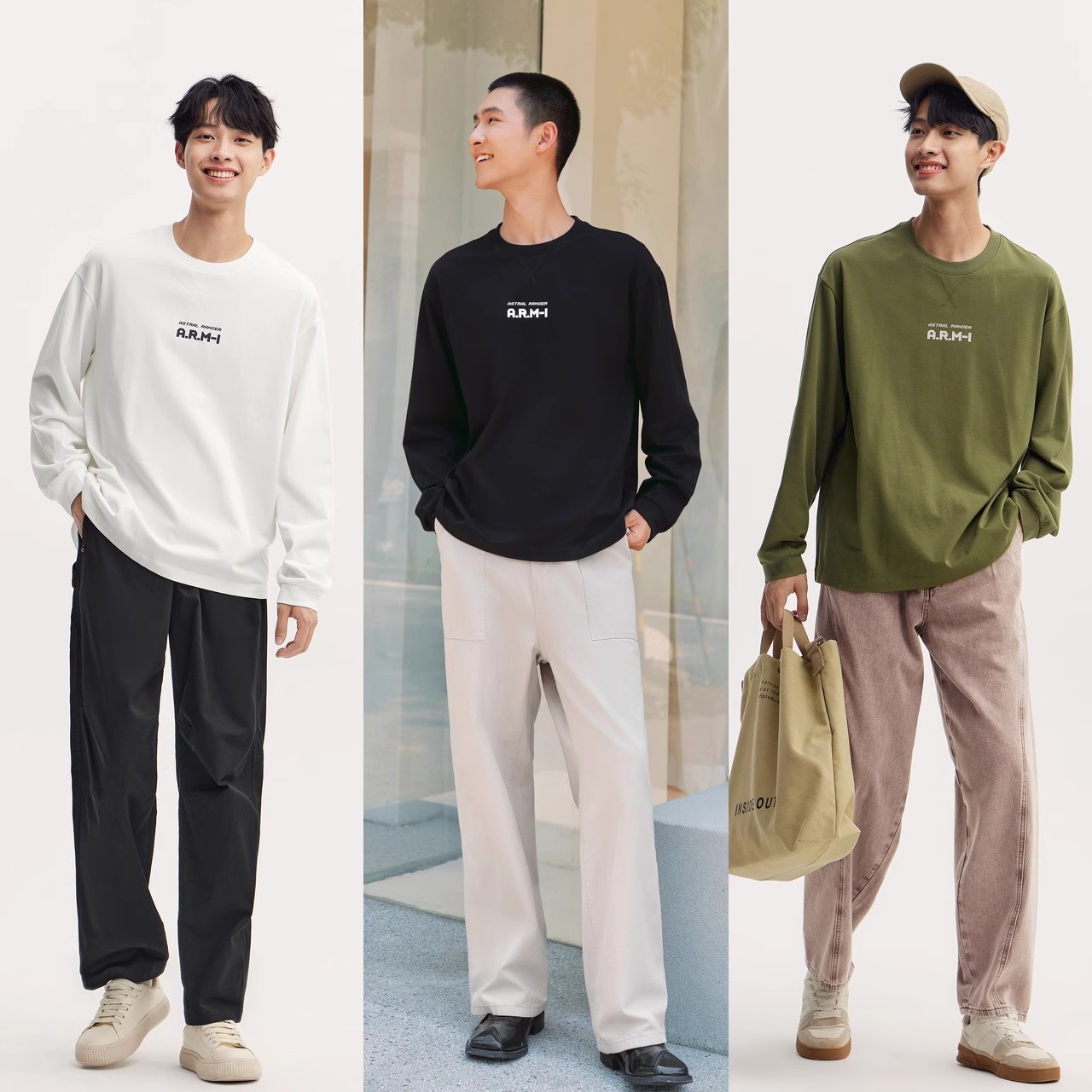 森马长袖T恤男2025春季新款纯棉印花内搭打底衫男士休闲上衣薄款