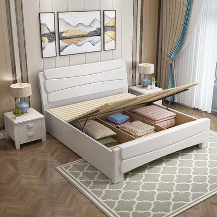 白色实木床1.5米单人床1.35米1.2高箱储物现代简约主卧1.8双人床
