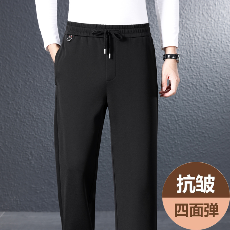 春秋款桑蚕丝男裤抗皱免烫男士运动裤直筒宽松休闲裤中年爸爸裤子