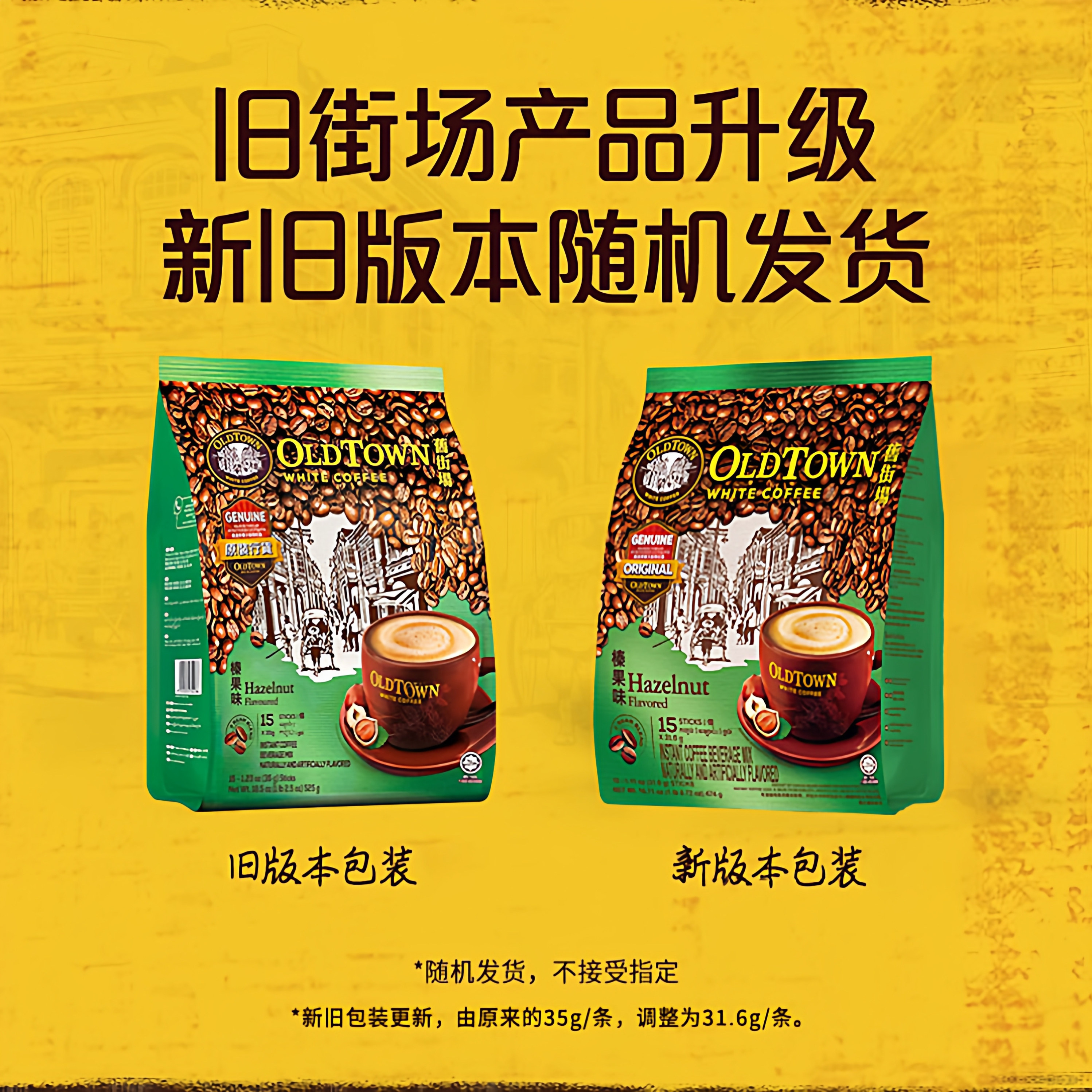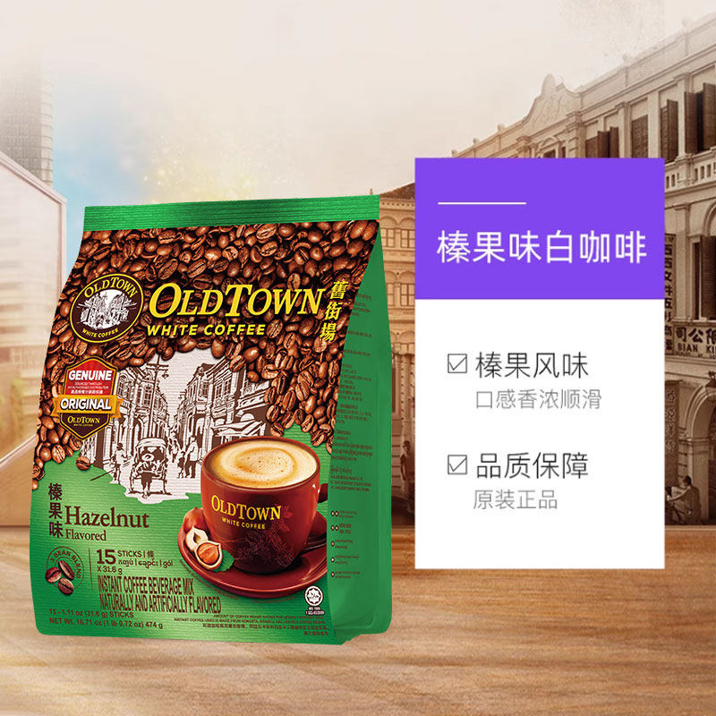 马来西亚旧街场白咖啡粉榛果味三合一速溶咖啡原装进口港版15条*2