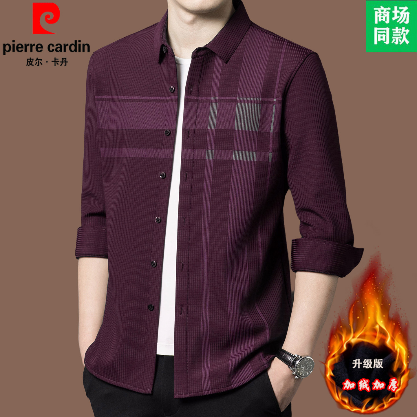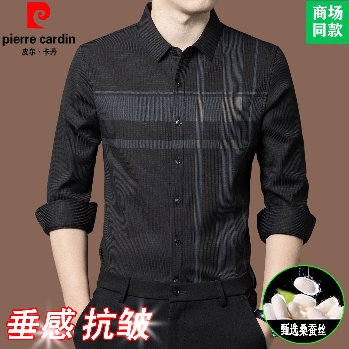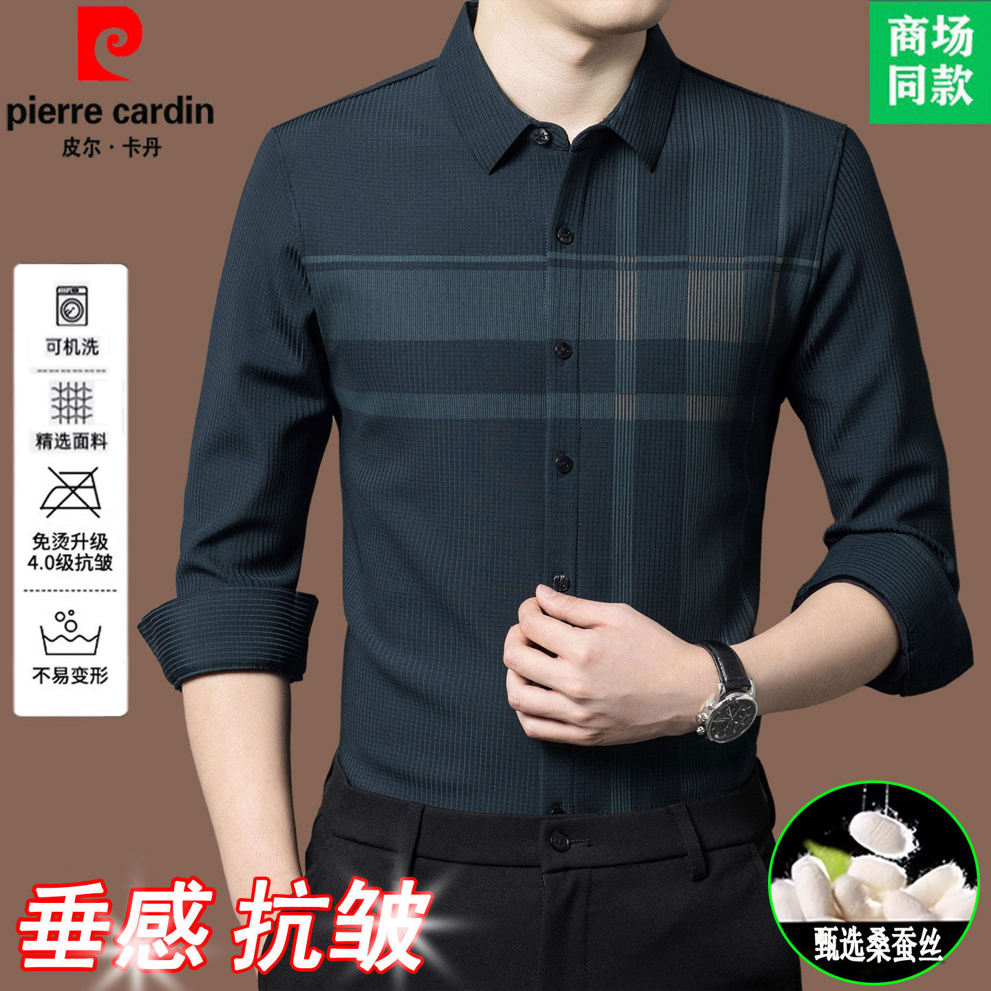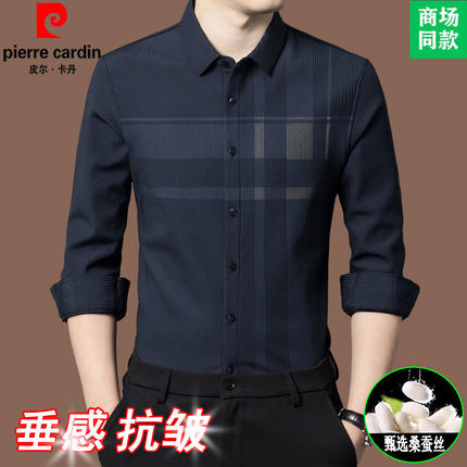 皮尔卡丹高级感男士桑蚕丝长袖衬衫秋季新款商务休闲免烫高端衬衣