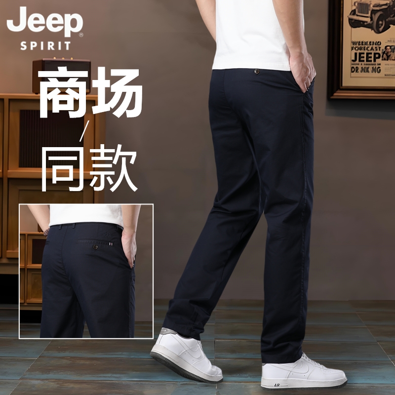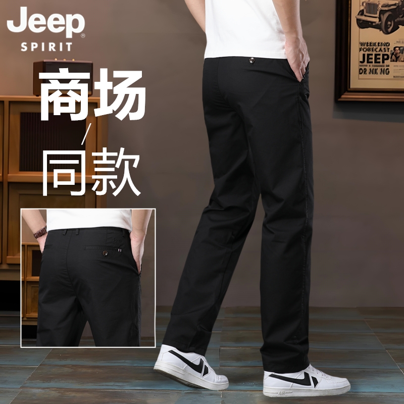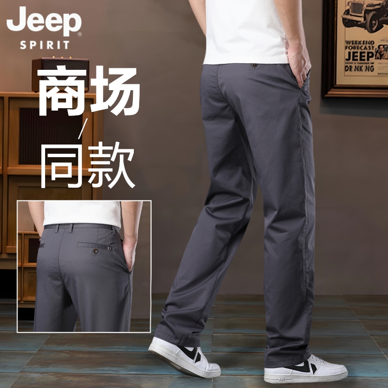 吉普春夏季薄款男士宽松直筒休闲裤中年时尚百搭长裤抗皱西裤
