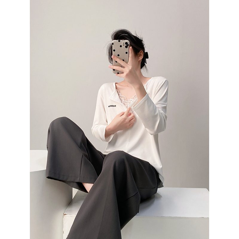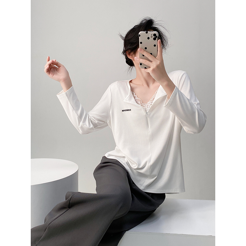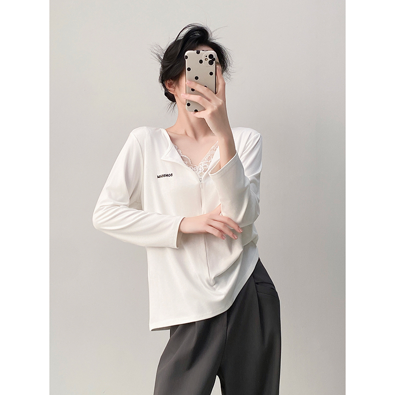 翠袖大码半拉链蕾丝拼接长袖T恤打底衫女2025秋新款胖mm显瘦上衣