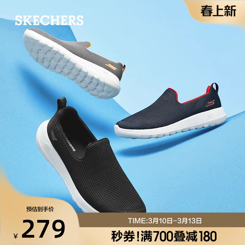 斯凯奇男鞋GOWALK健步鞋春季新款厚底一脚蹬网面爸爸舒适休闲鞋