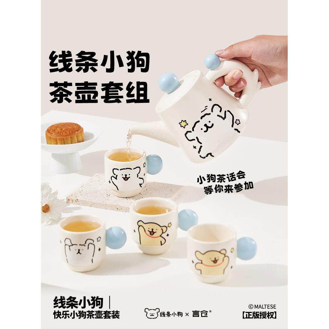言仓线条小狗茶壶礼盒下午茶具茶杯实用可爱创意乔迁生日新婚礼盒