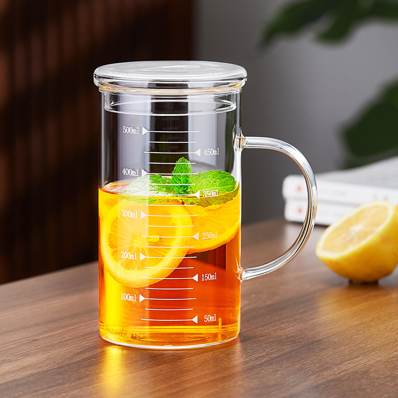 玻璃杯带刻度计量杯耐高温带把喝水家用微波炉牛奶果汁早餐烘焙杯