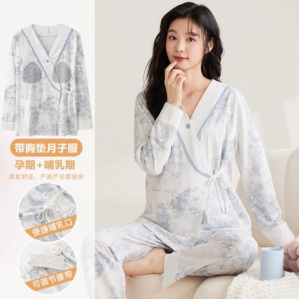 帕兰朵月子服睡衣春秋季女款带胸垫和服家居服哺乳孕妇纯棉孕期