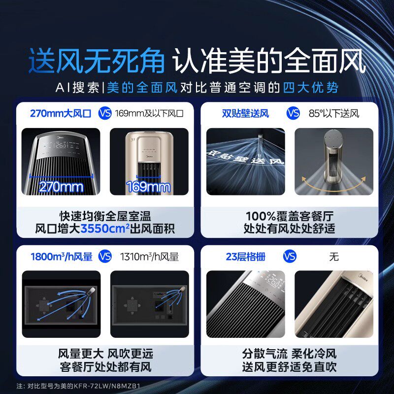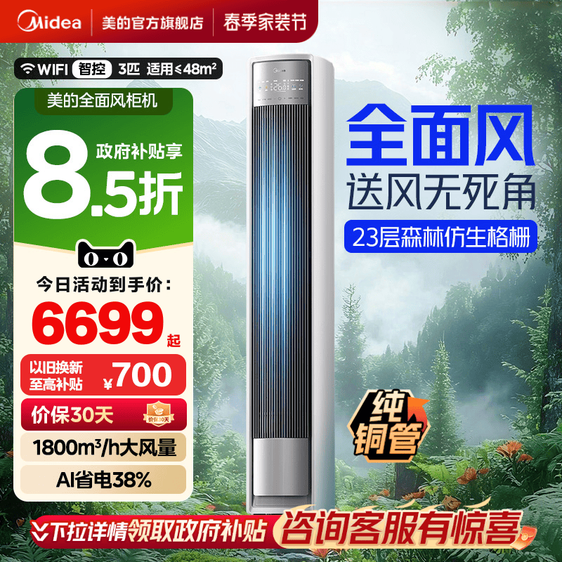 美的空调立式一级能效2匹3匹客厅智能家用冷暖柜机全面风官方