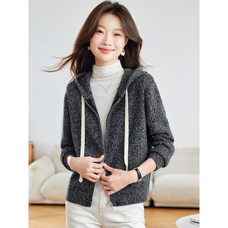 带帽针织开衫女春秋2025爆款小个子毛衣外套慵懒风连帽毛衣外套