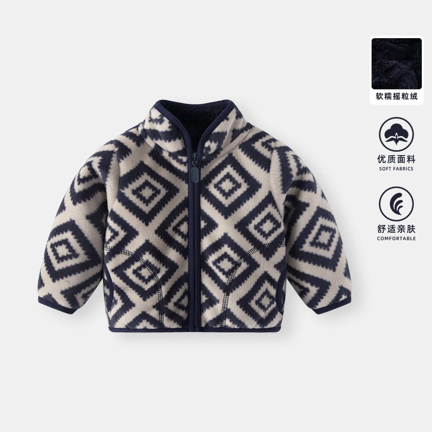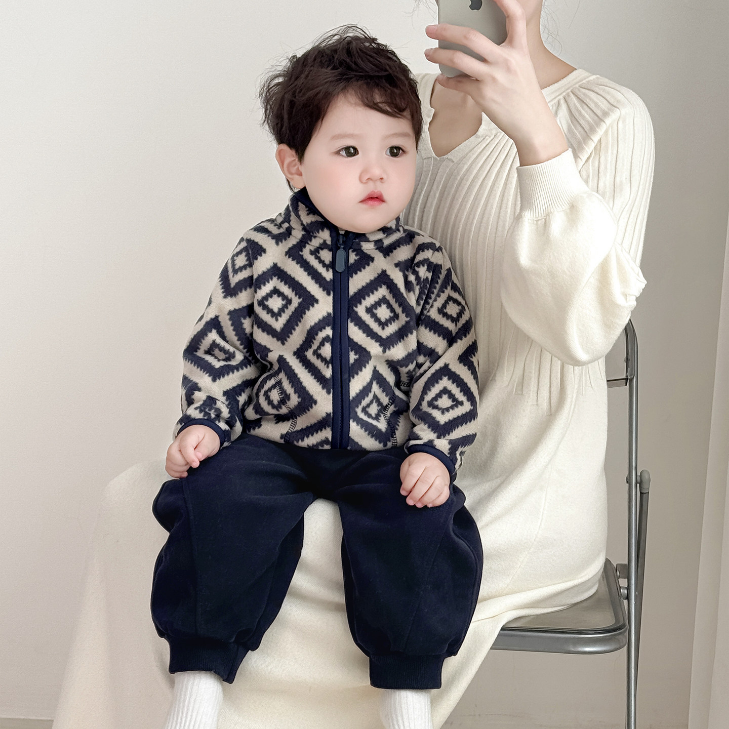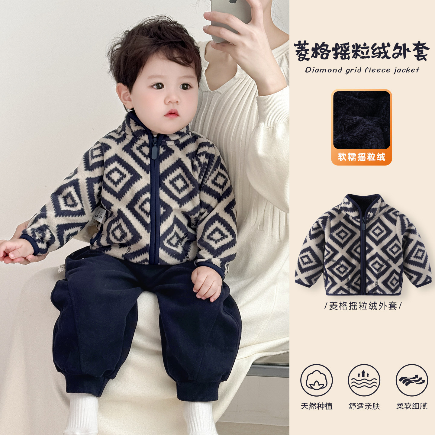 波步婴儿套装2026秋冬摇粒绒加厚保暖上衣男宝宝冬装男童衣服外套