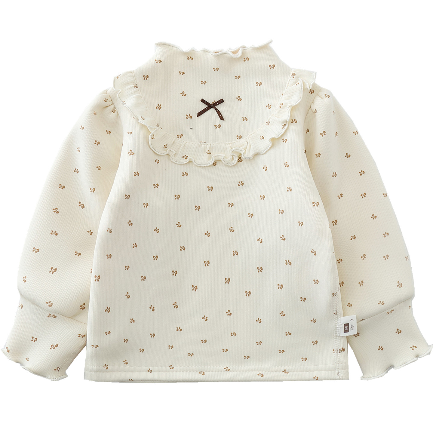 童装冬装女童加绒加厚木耳边打底衫婴儿半高领上衣女宝宝长袖T恤