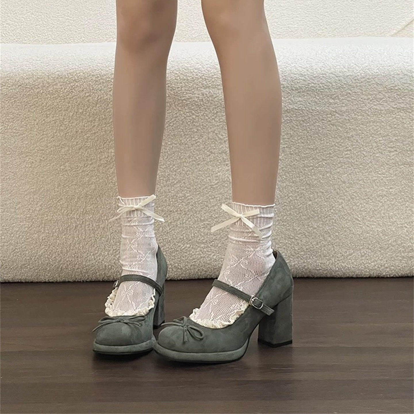 法式甜美蝴蝶结玛丽珍粗跟单鞋