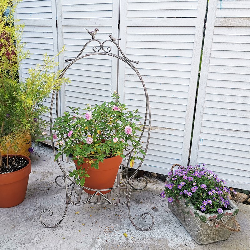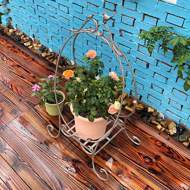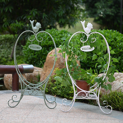 极速欧式户外花园做旧铁艺小w鸟托盘花架庭院阳台绿植花盆架牵引