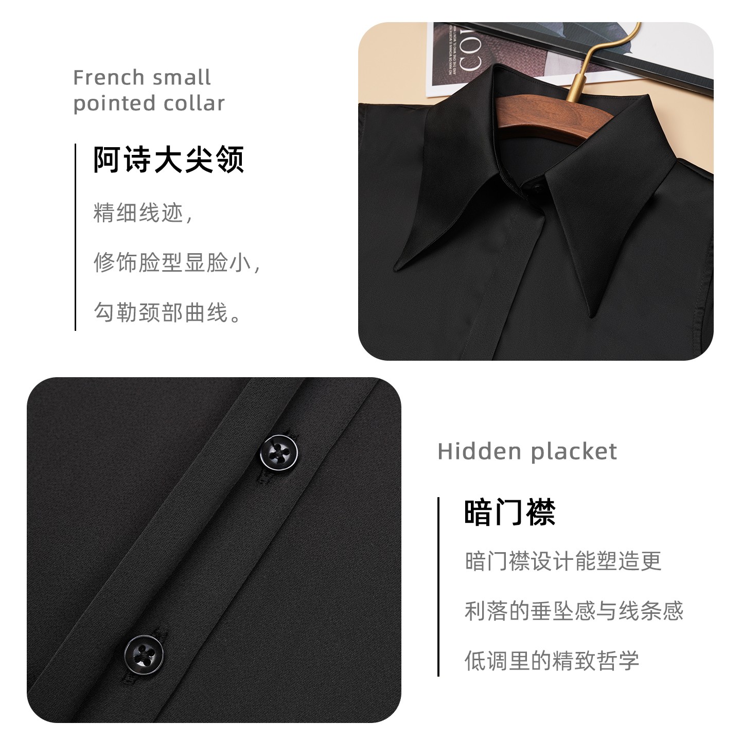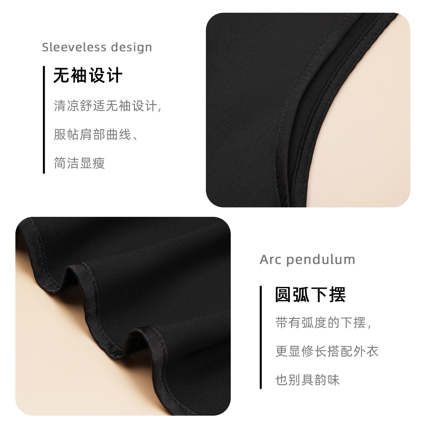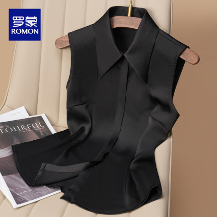 罗蒙黑色女衬衫假领背心无袖内搭尖领高级感百搭气质打底上衣