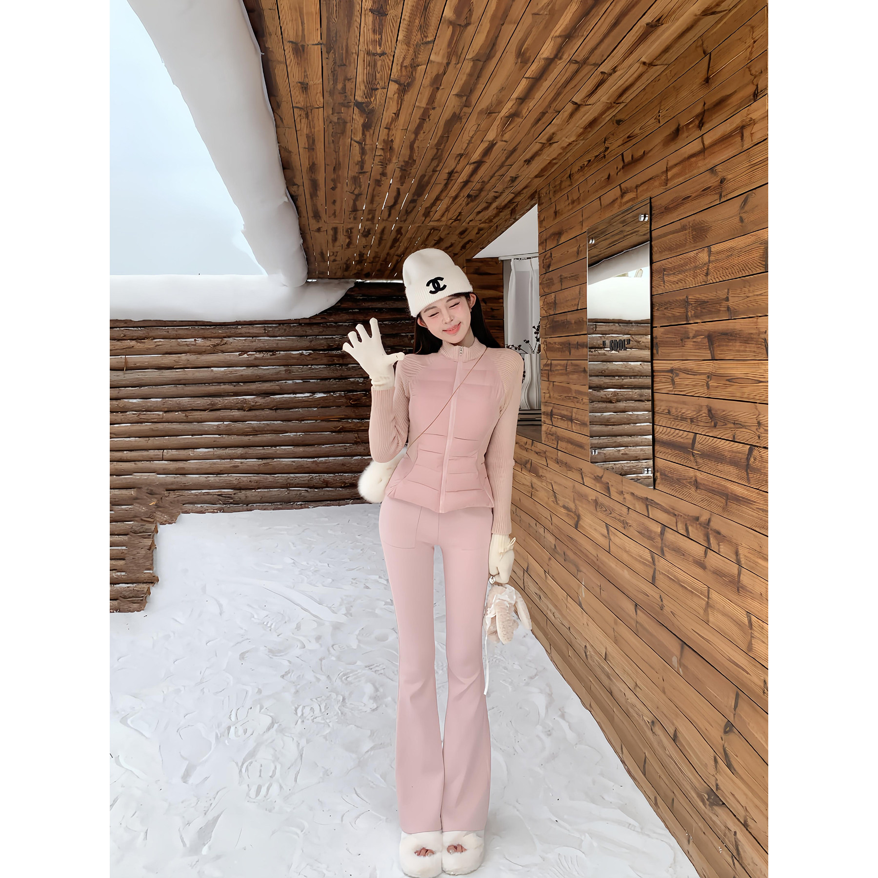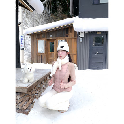项天鹅er 短款羽绒服女2025冬季新款针织拼接收腰上衣轻薄外套