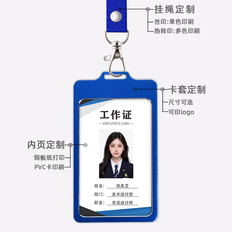 铝合金工作牌胸牌定制设计卡套透明证件套挂绳工牌金属厂牌吊牌员工学生工作证胸卡挂牌脖工号牌高档硬园门禁