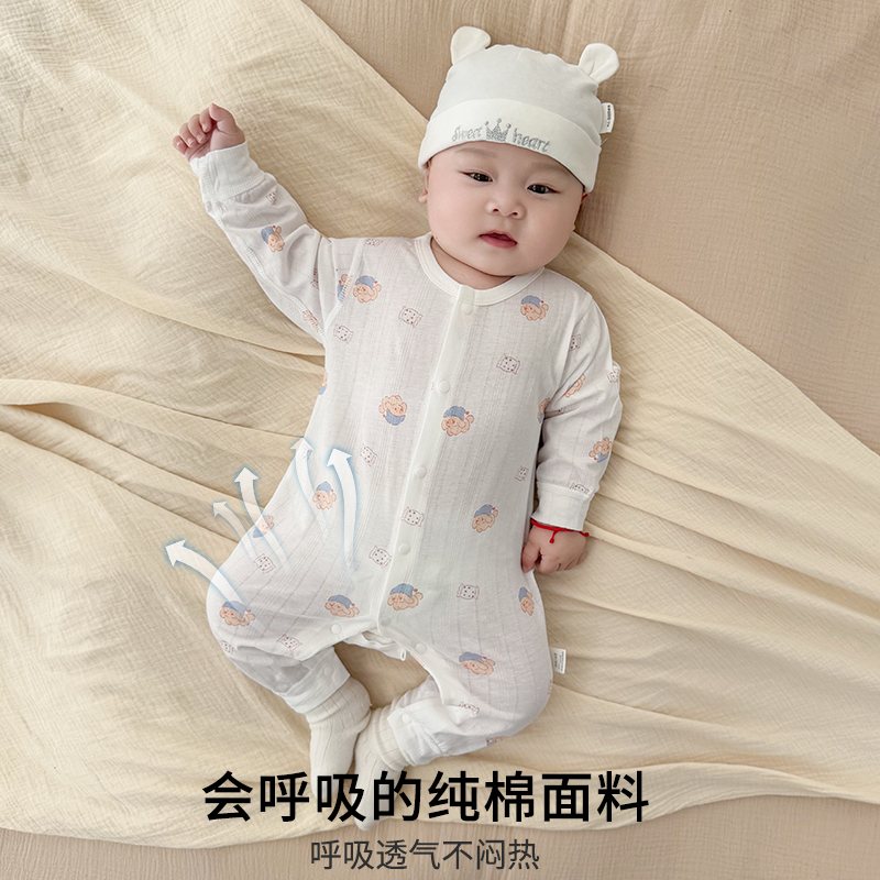 纯棉薄款婴儿连体衣春夏宝宝睡衣
