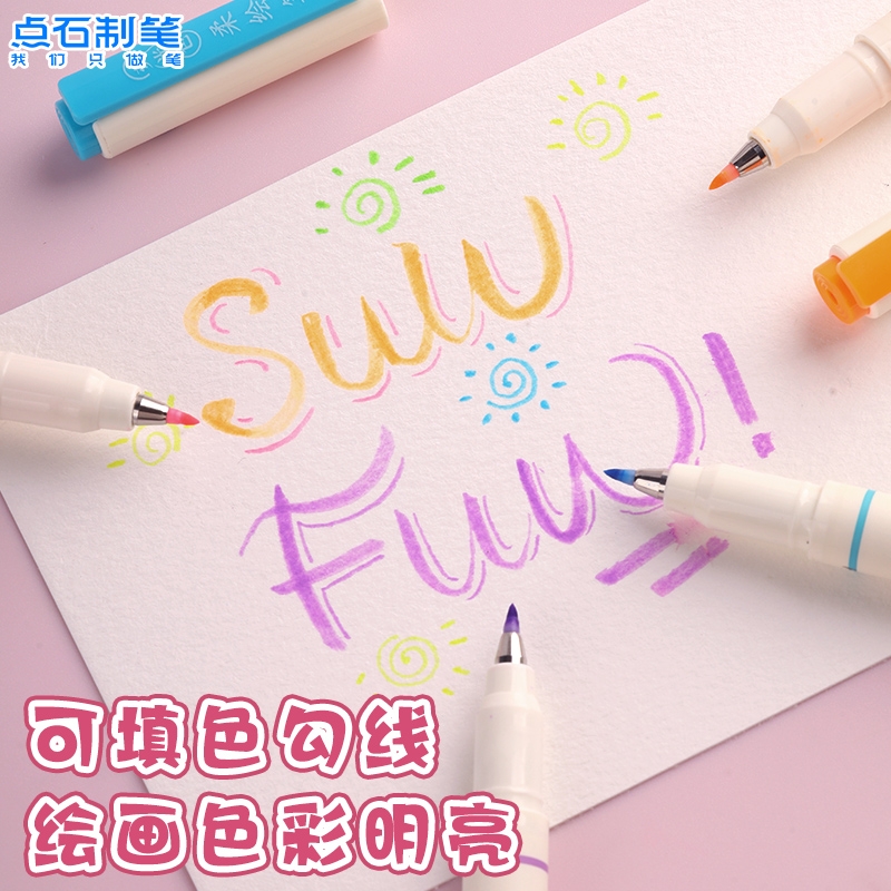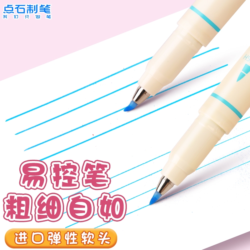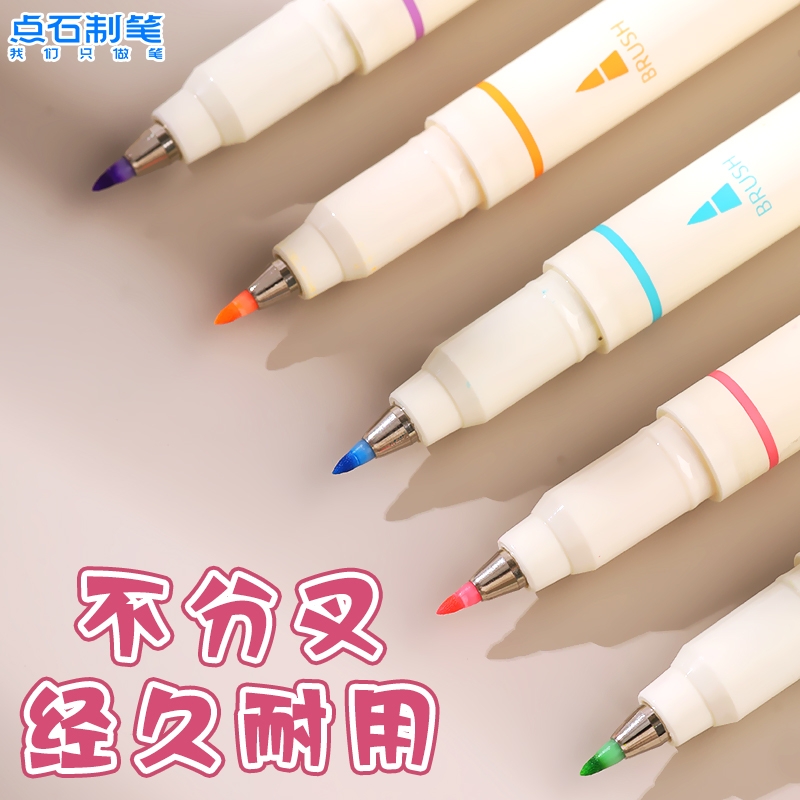 点石柔绘笔荧光色柔顺软头新品黑色秀丽笔美术生专用画笔全套笔学生水彩勾画手绘笔红色手账彩色笔划重点标记