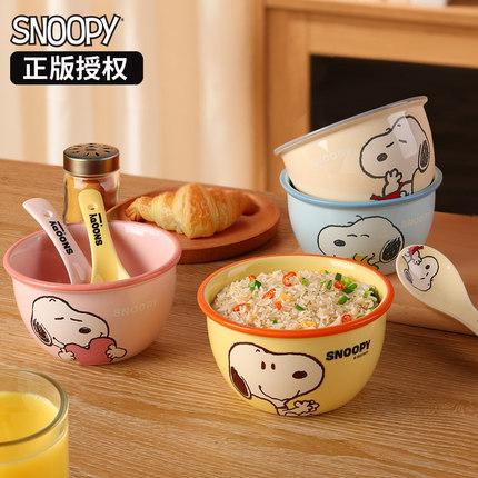 史努比陶瓷米饭碗家用儿童卡通可爱碗高颜值套装学生日用儿童餐具