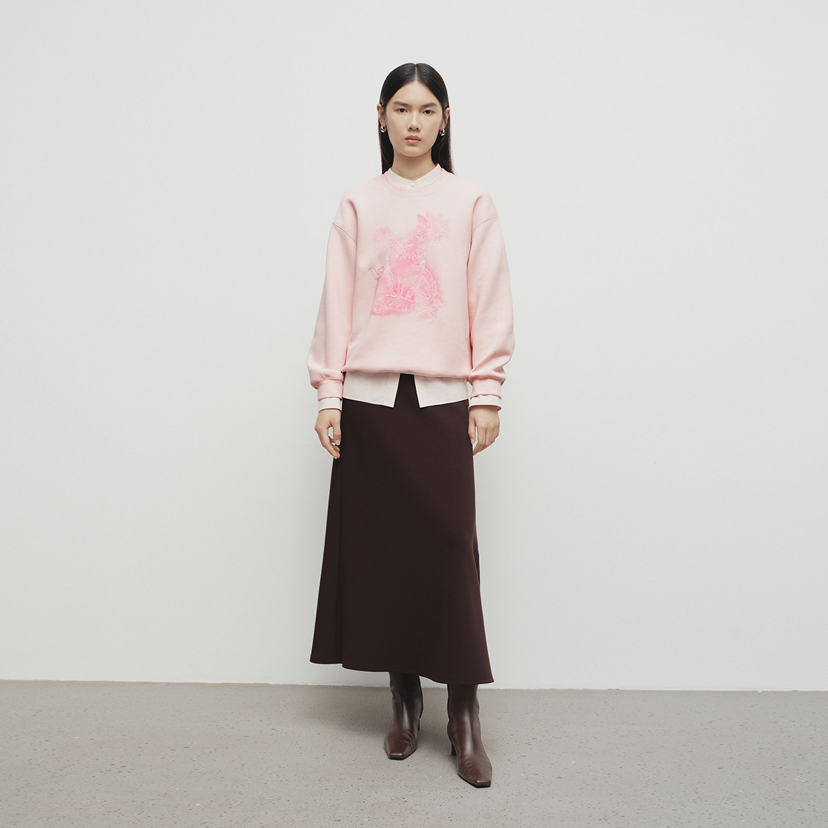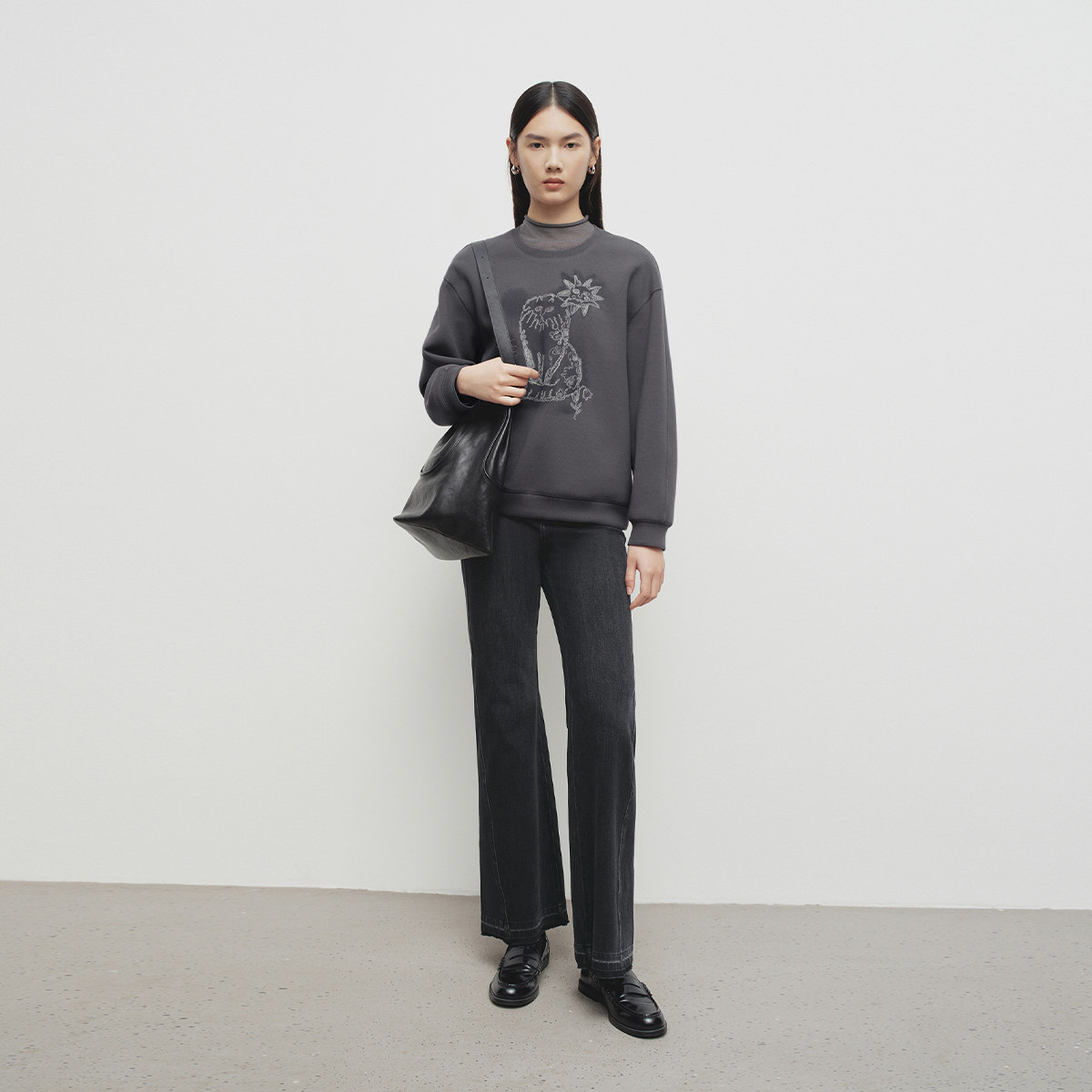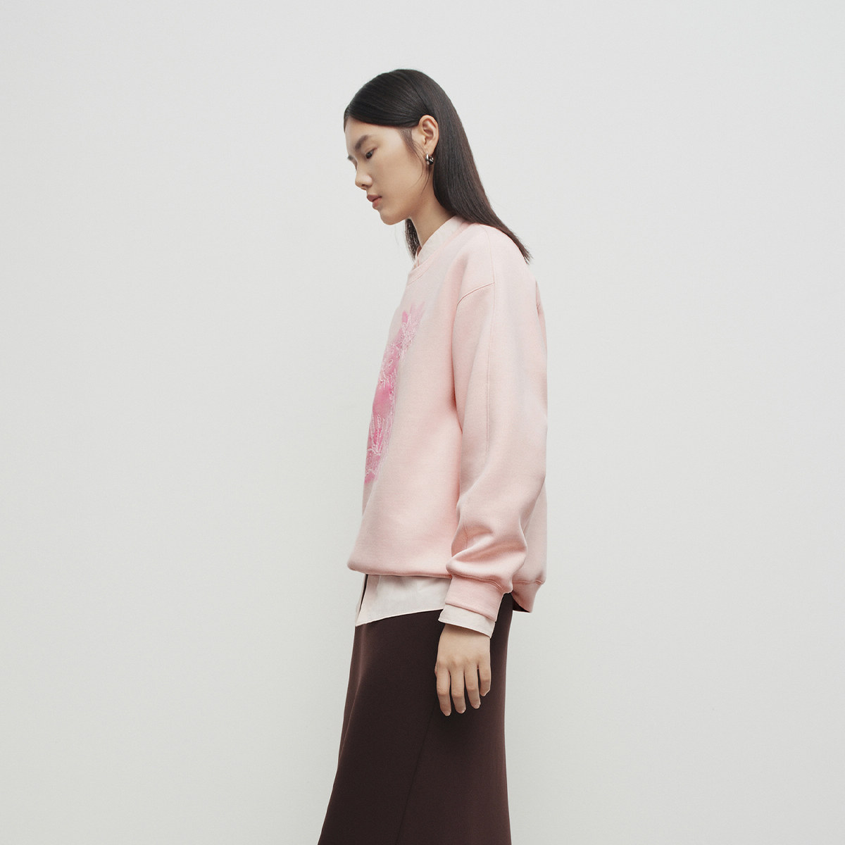 【播奥莱】播商场同款灰色卫衣女25早春宽松圆领上衣女BDS1VD1569