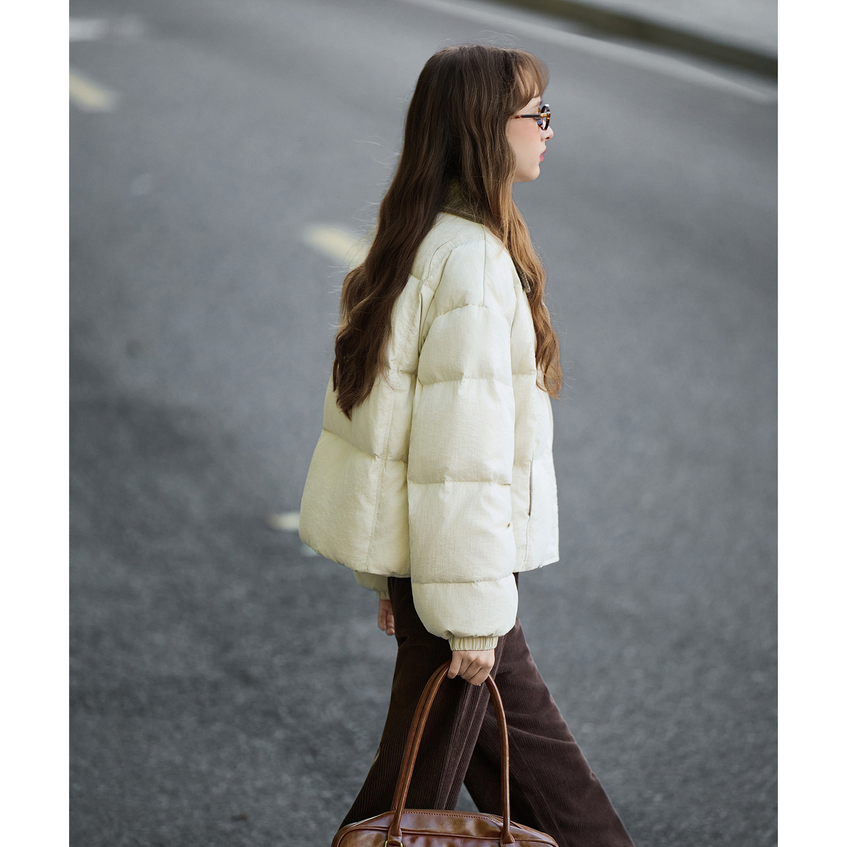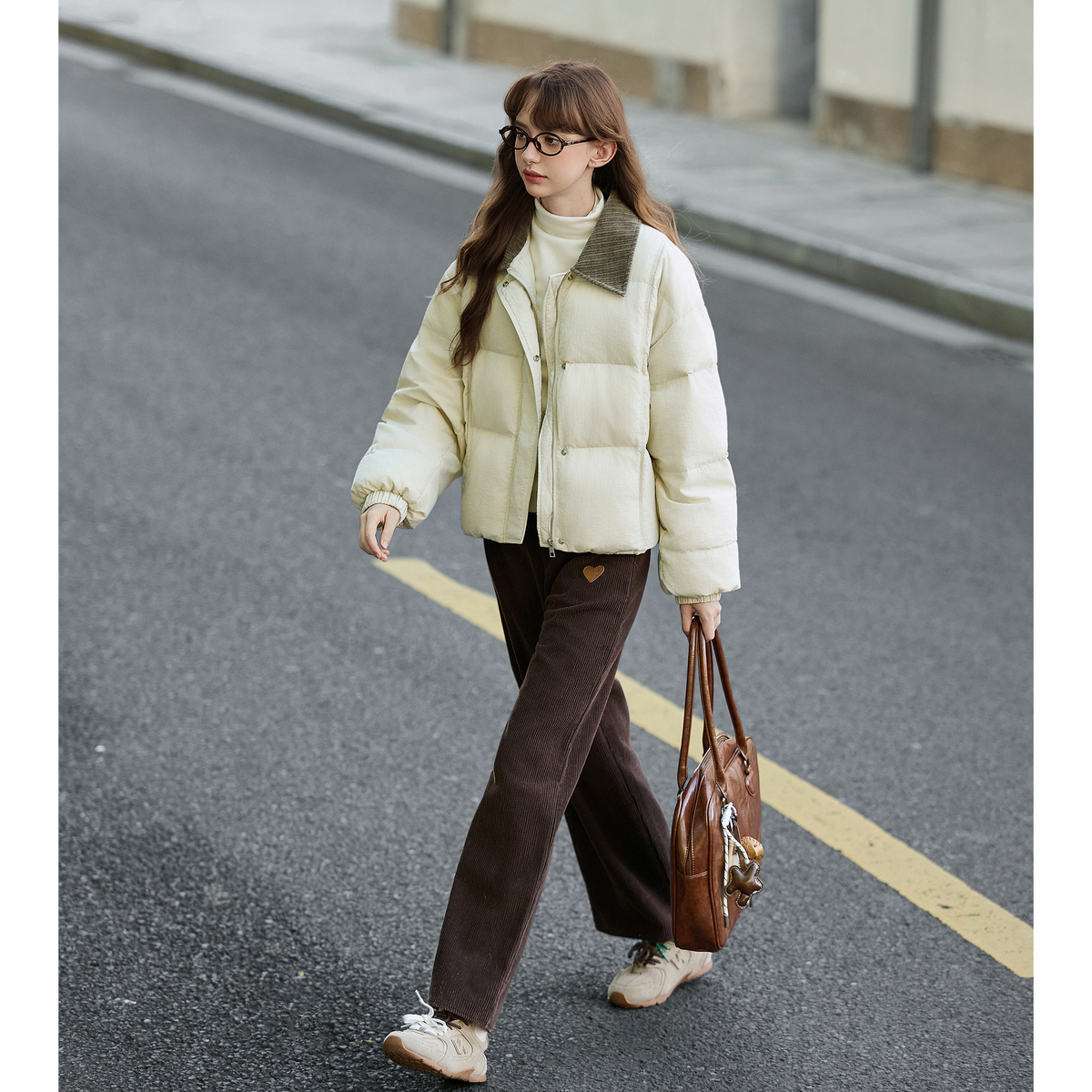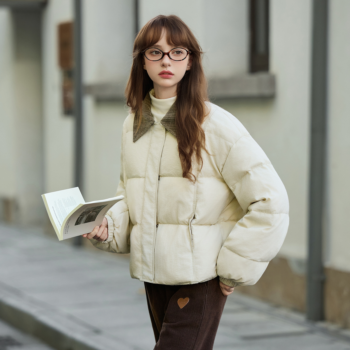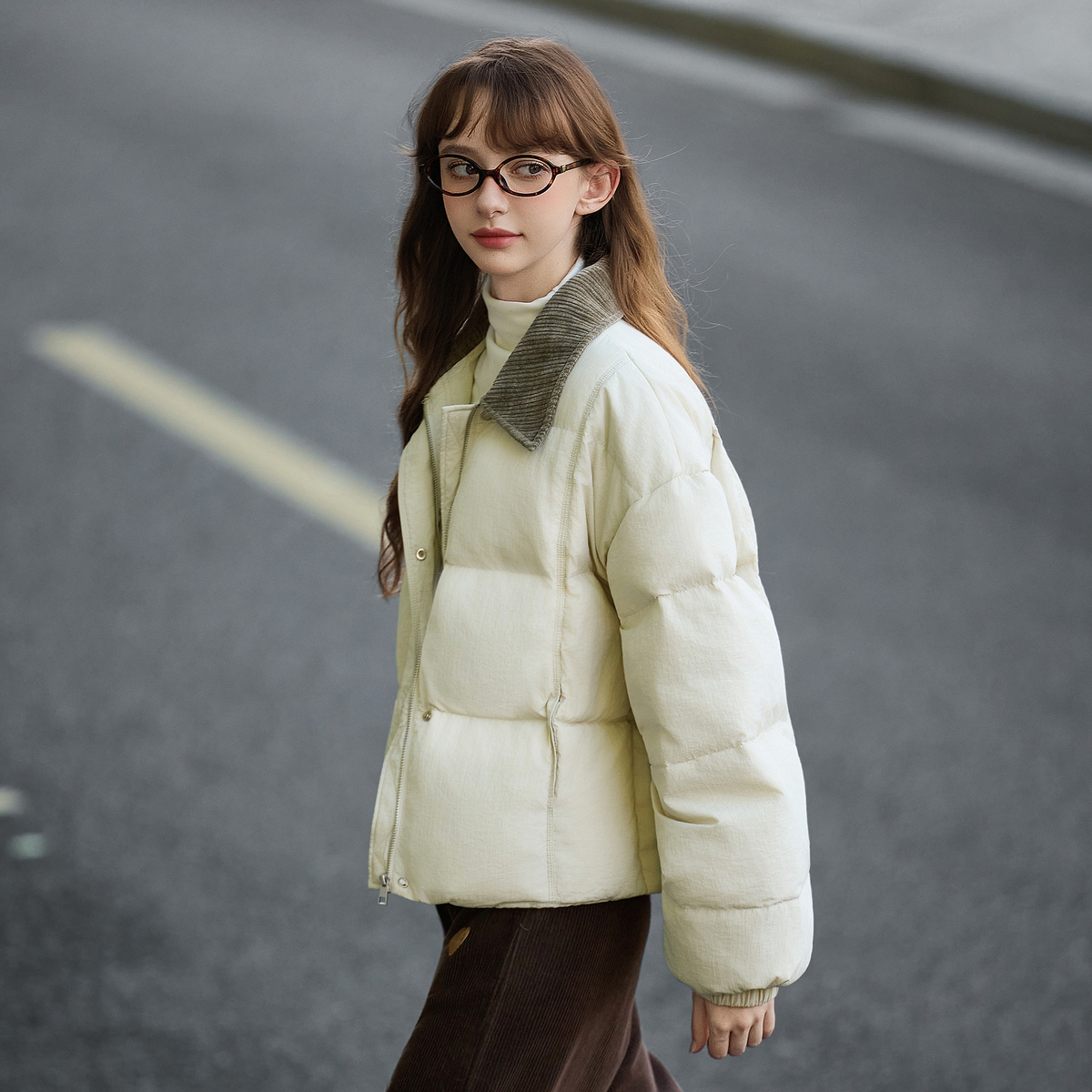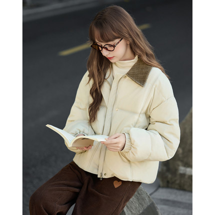 唐狮官方冬女撞色灯芯绒领子超短款羽绒服简约时尚高级感气质tuTA