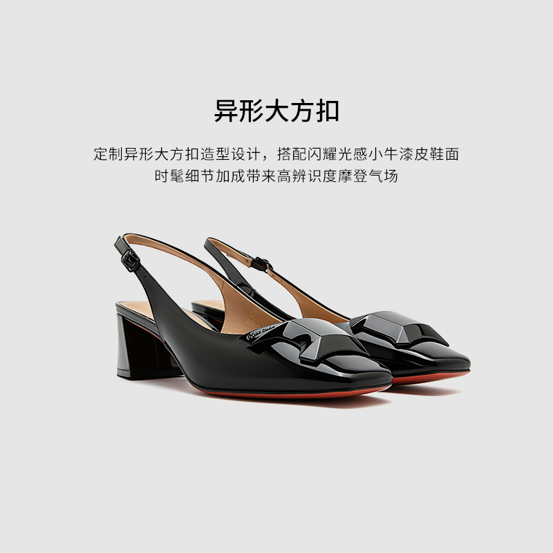 皮尔卡丹女凉鞋后空亮感漆牛皮