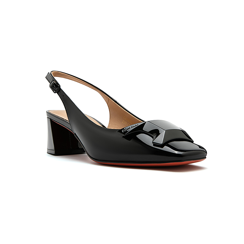 Pierre Cardin/皮尔卡丹25女鞋亮感小牛漆皮后空抽带女士凉鞋