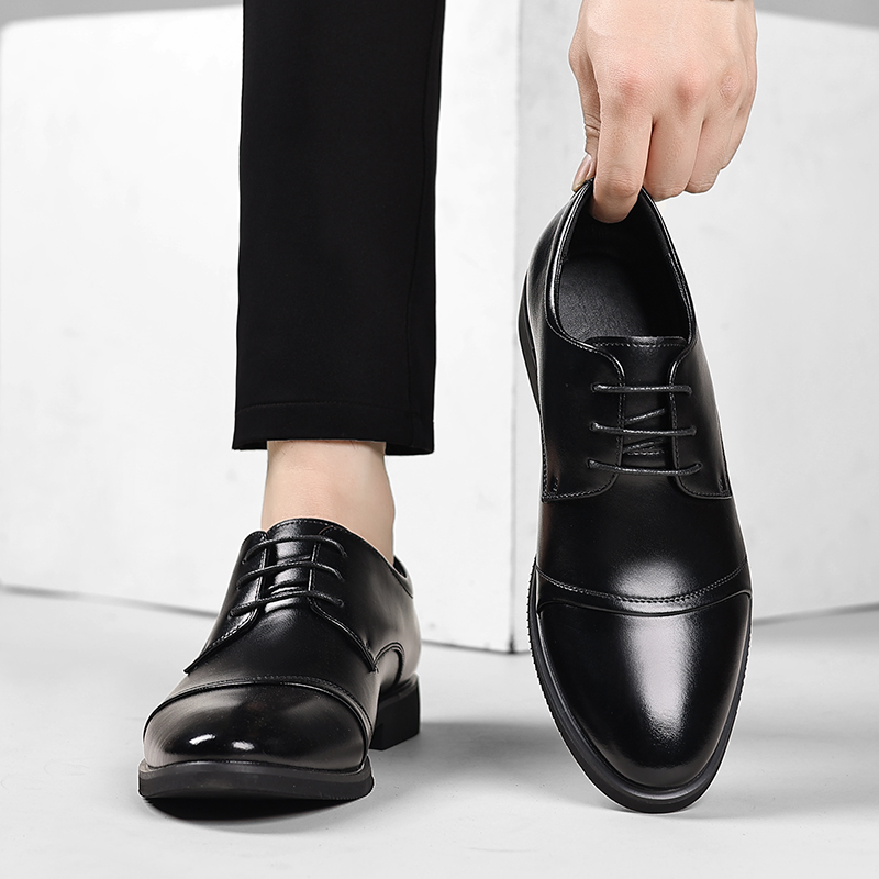 皮鞋男款黑色英伦秋季商务正装真皮透气内增高休闲男鞋结婚新郎鞋