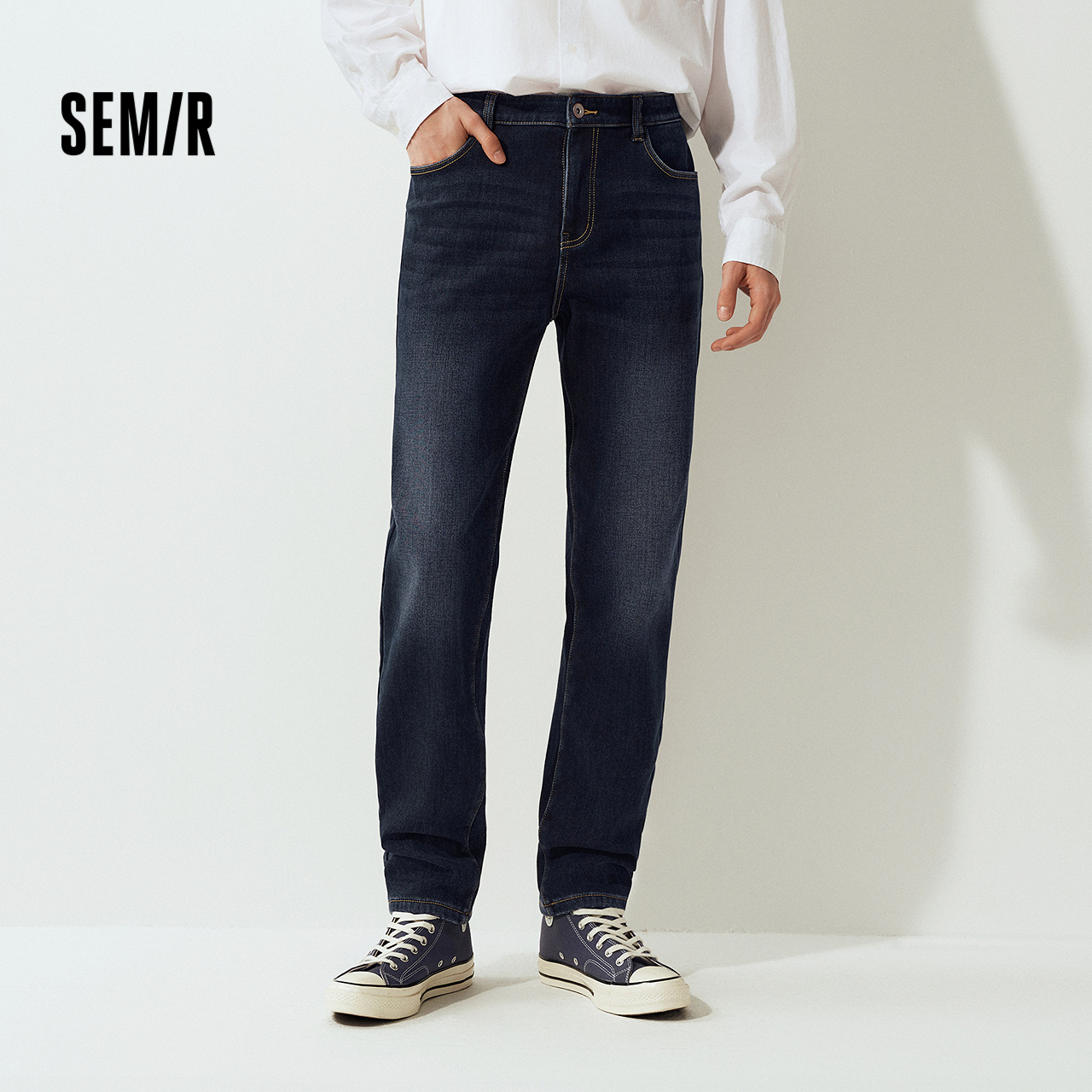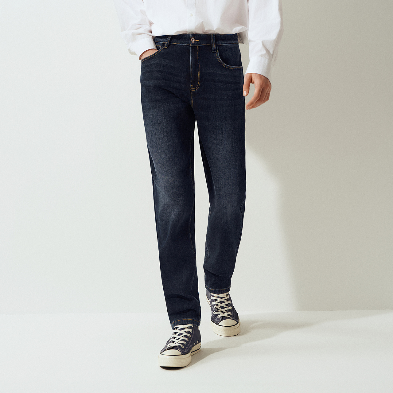 森柔|森马牛仔裤男冬季加绒弹力锥形裤2025新款猫须复古做旧长裤