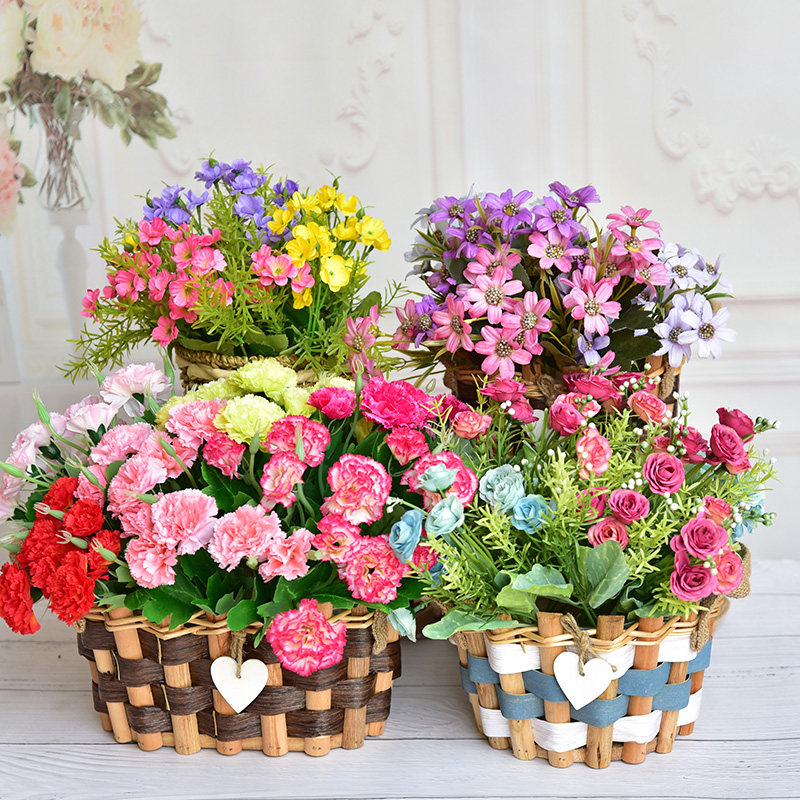 仿真花束假花干花家居装饰花艺插花摆件小玫瑰康乃馨绢花雏菊单支