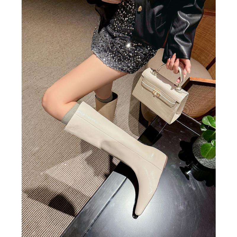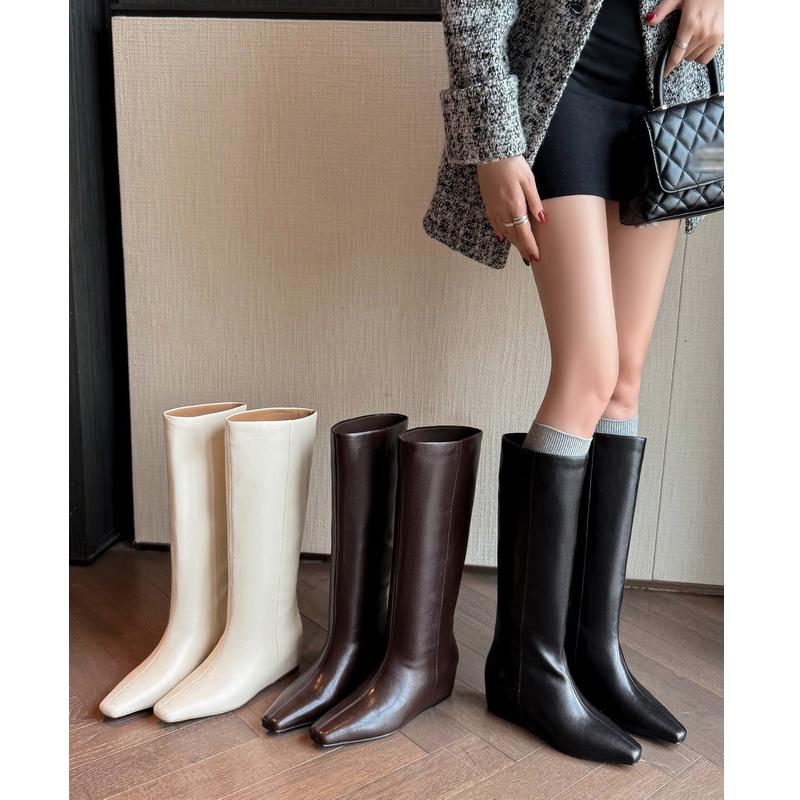 方头坡跟内增高长筒靴2025新款宽筒大筒围棕色高筒骑士靴直筒靴子