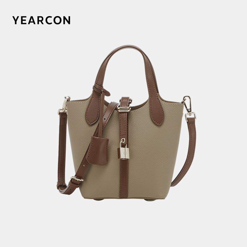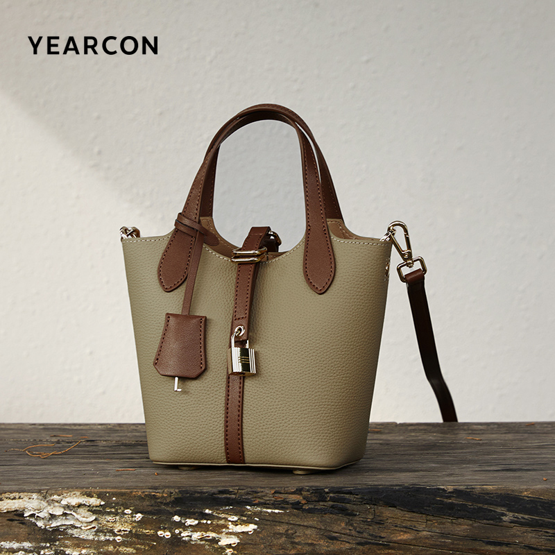 意尔康牛皮女包新款手提包时尚质感菜篮子包通勤斜挎包单肩手拎包