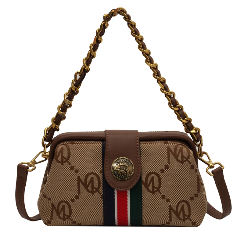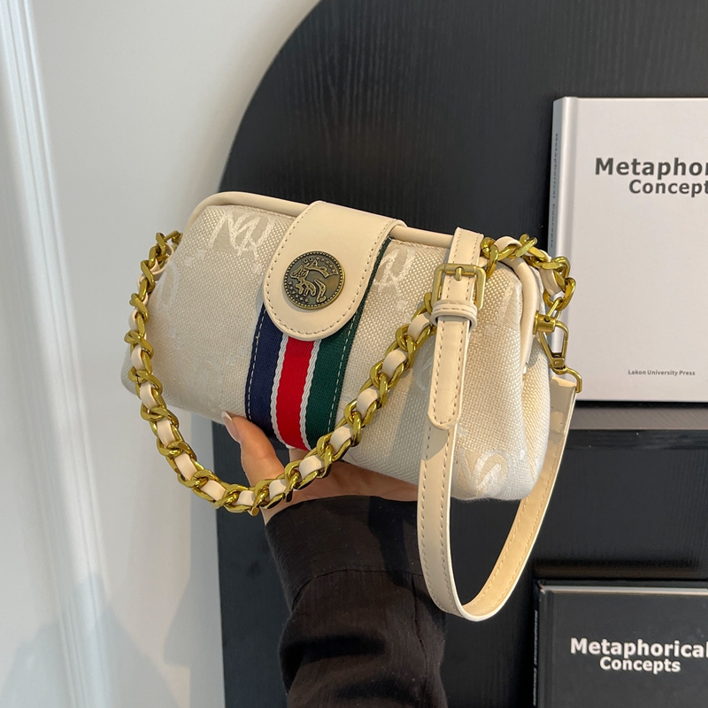 高级感小包包女士2025新款时尚流行帆布斜挎包链条手提夹口小方包