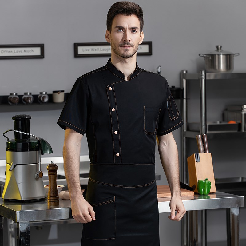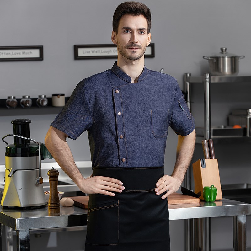 高档牛仔夏季透气厨师工作服男短袖餐饮酒店餐厅后厨饭店厨房工衣