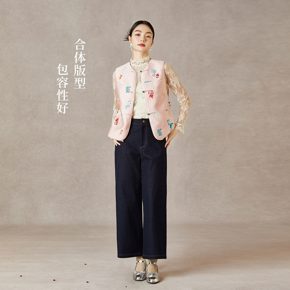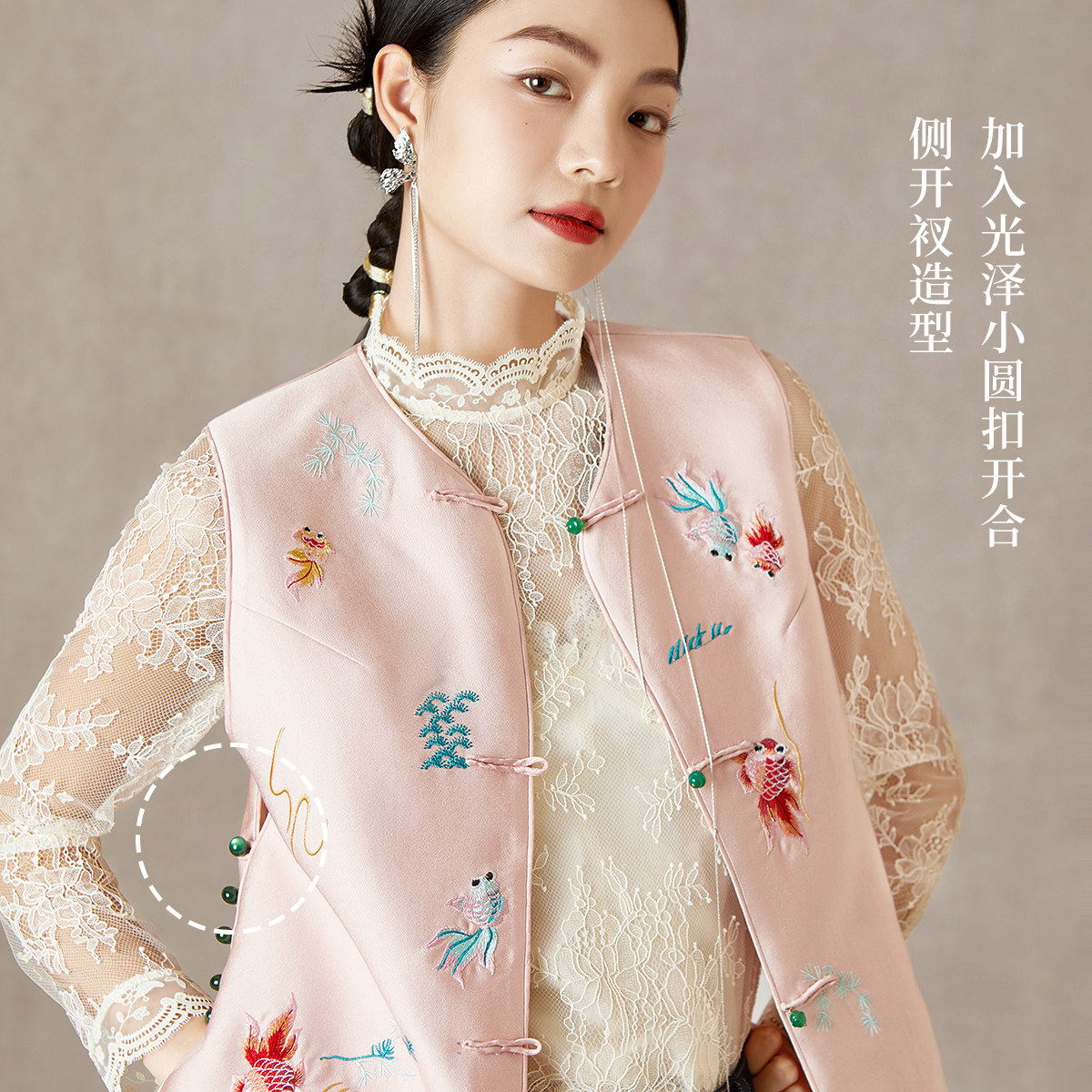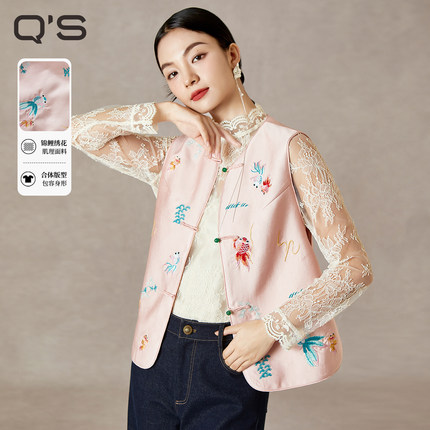 【商场同款】秸熙20255春秋复古轻国风锦鲤绣花马甲无袖叠穿外套