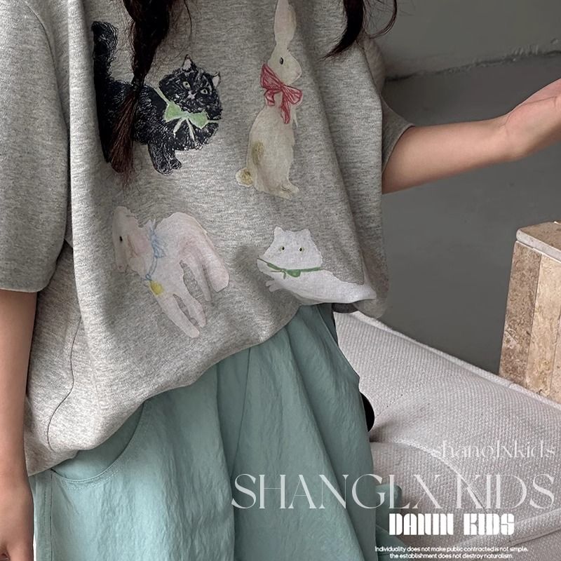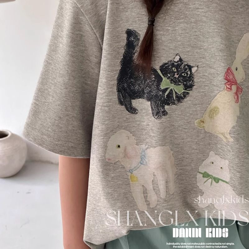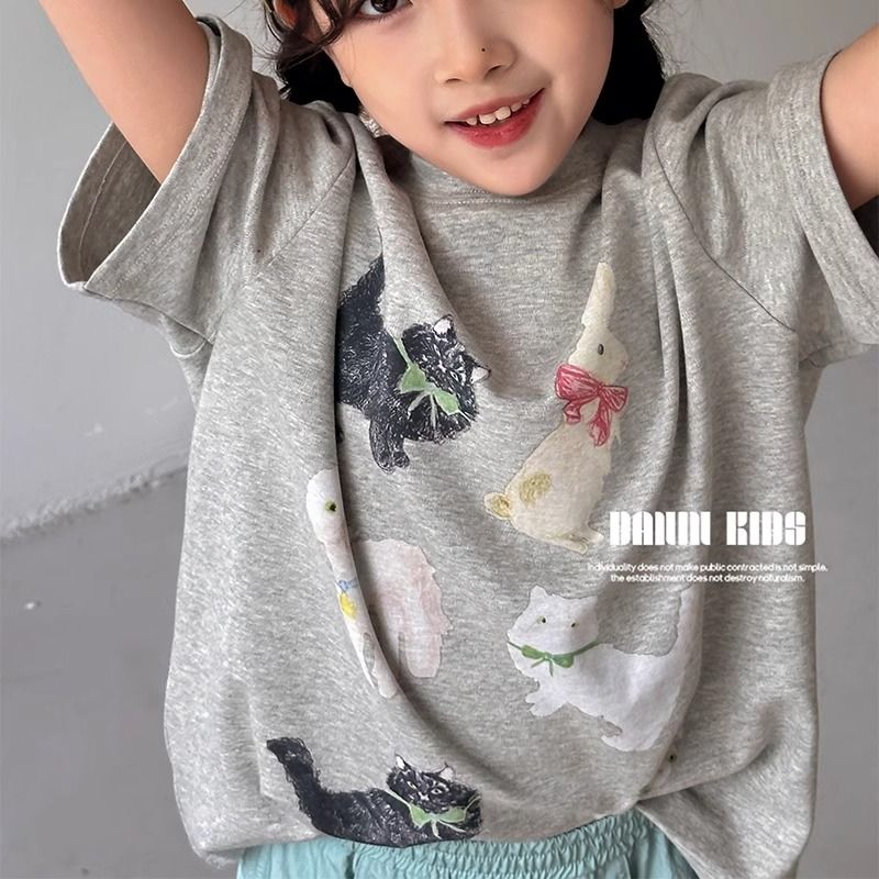 2025夏季新款女童短袖T恤纯棉中大童儿童设计感小众韩版宽松上衣