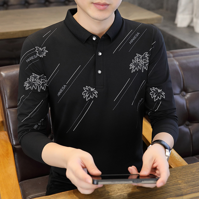 2024春秋季新款男士长袖t恤潮流POLO打底衫男装纯棉体恤上衣服