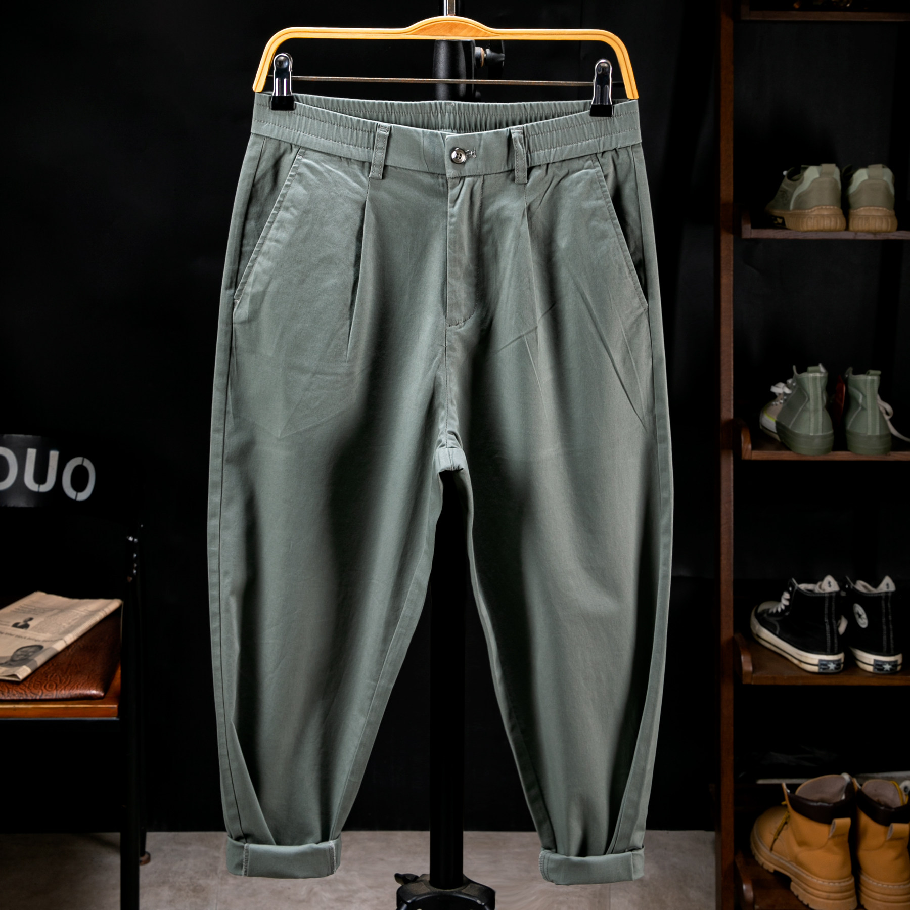 春秋松紧腰哈伦裤男装休闲九分裤加肥加大码弹力宽松胖子小脚裤子