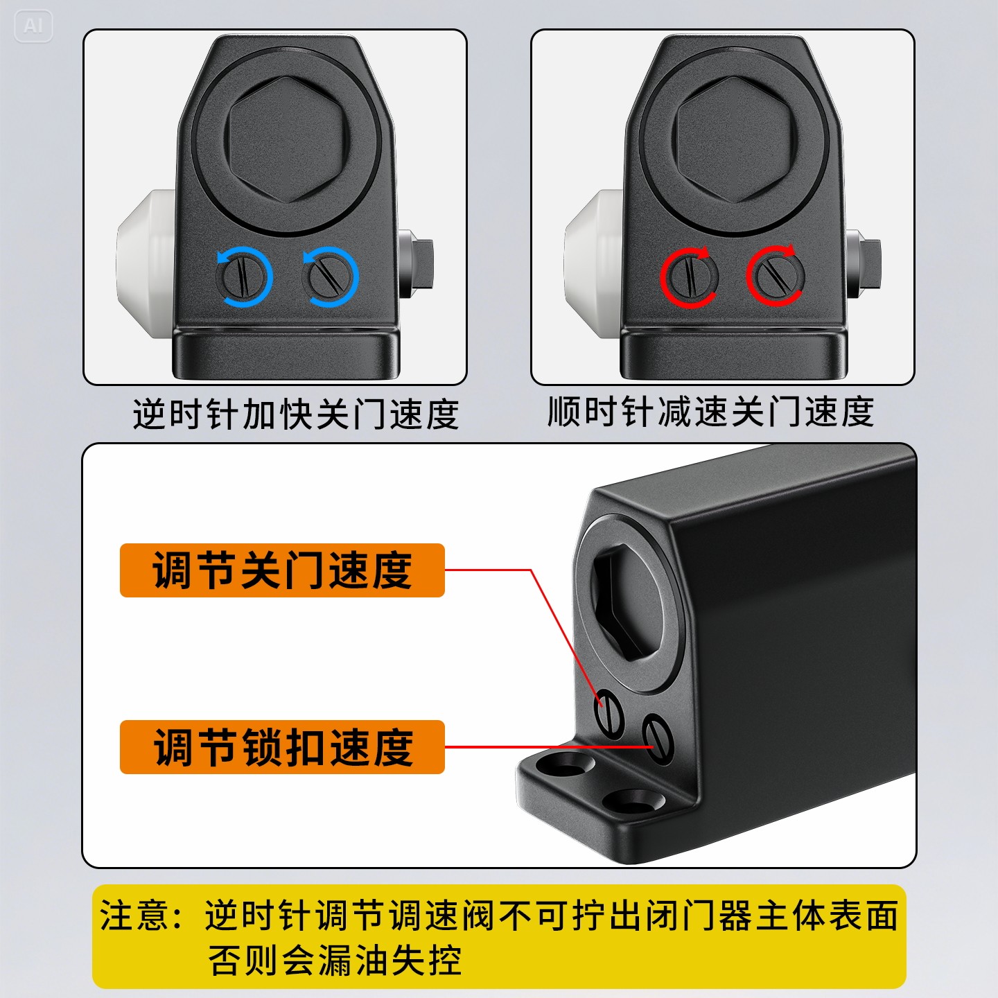 哑黑闭门器推拉门自动闭合回位缓冲消防门液压可调速阻尼式静音