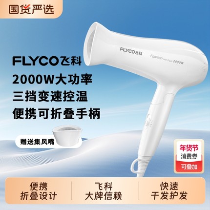 飞科电吹风机家用理发店大功率便携可折叠速干风筒推荐护发大风力