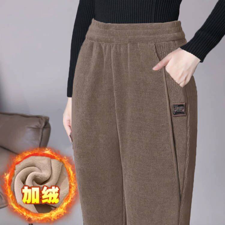 加绒欧棉绒哈伦裤女裤秋冬高腰大码宽松显瘦加厚裤子妈妈休闲裤潮